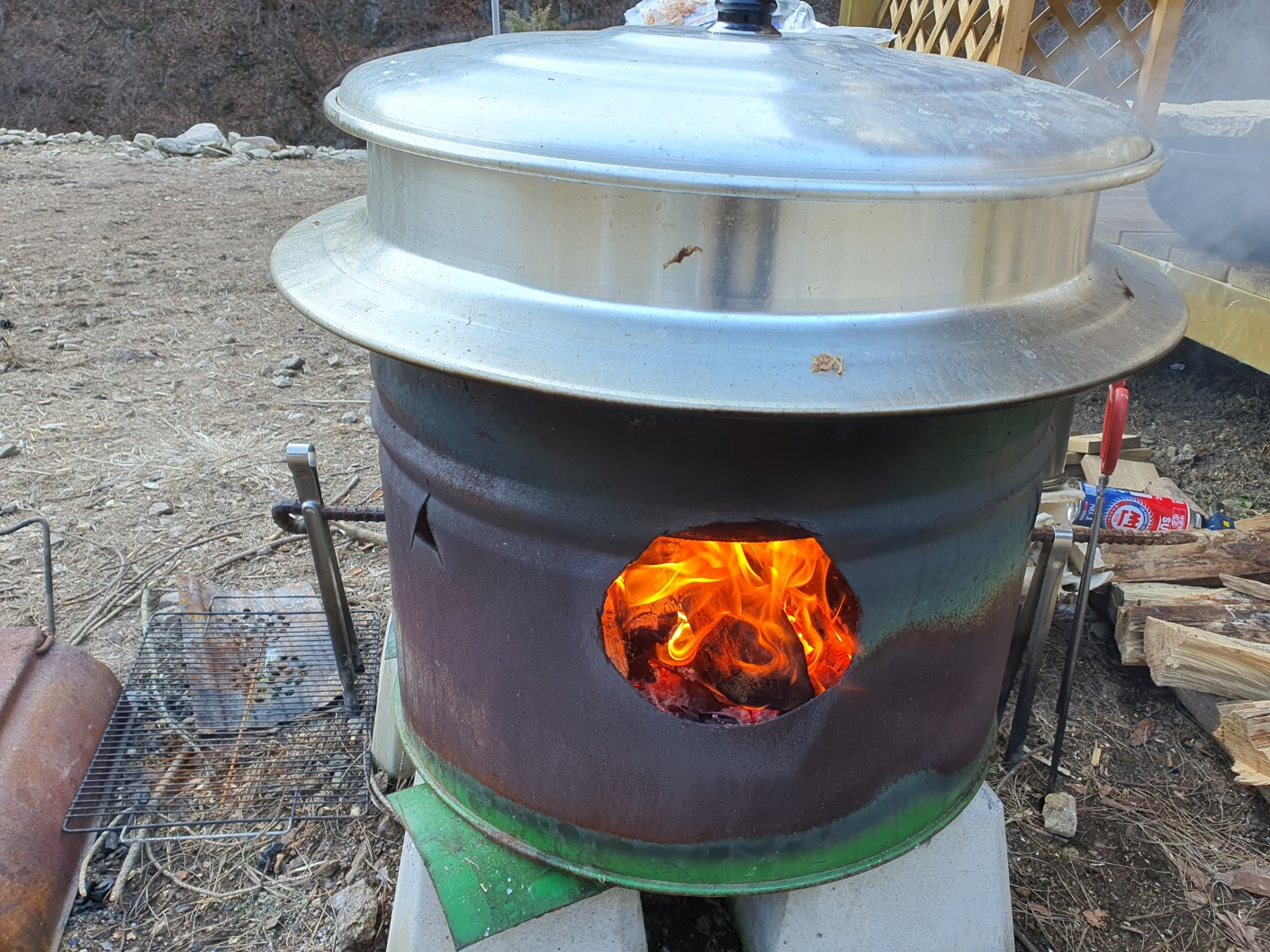 가마솥 뒷쪽은 작은 굴뚝을 세워야 하나 아직 설치하지 못했는데 어떨 때는 더 요긴하게 쓰입니다.