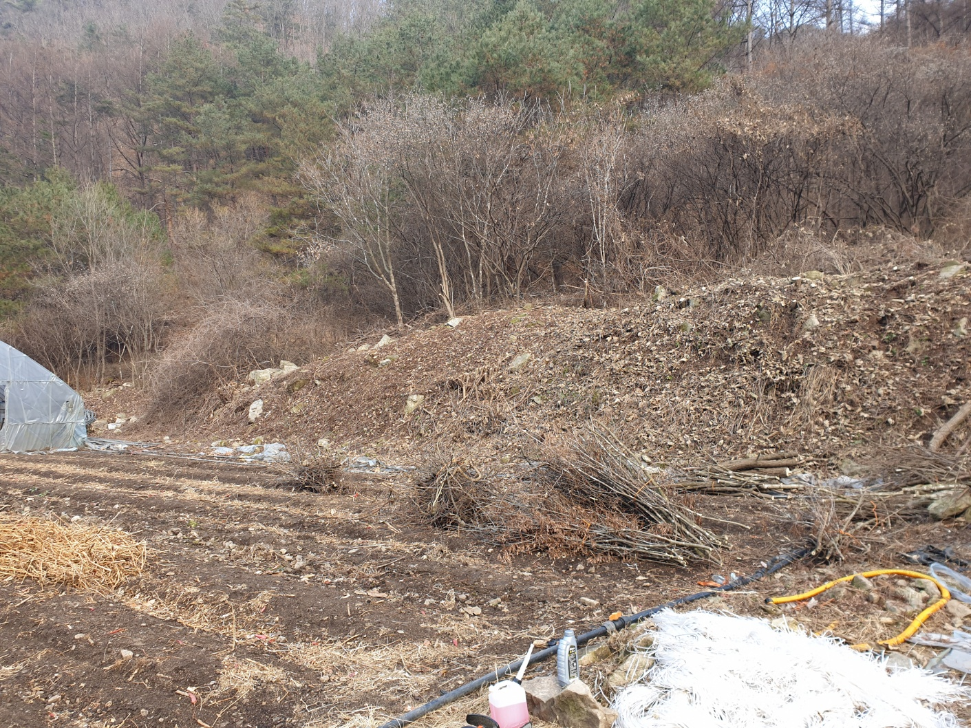 한겨울이라 눈도 쌓여 있고 나무도 아직 정리하지 못한 상태였습니다. 밭을 대지로 전환하기위해 토목공사 허가를 받고 작업을 시작했습니다.