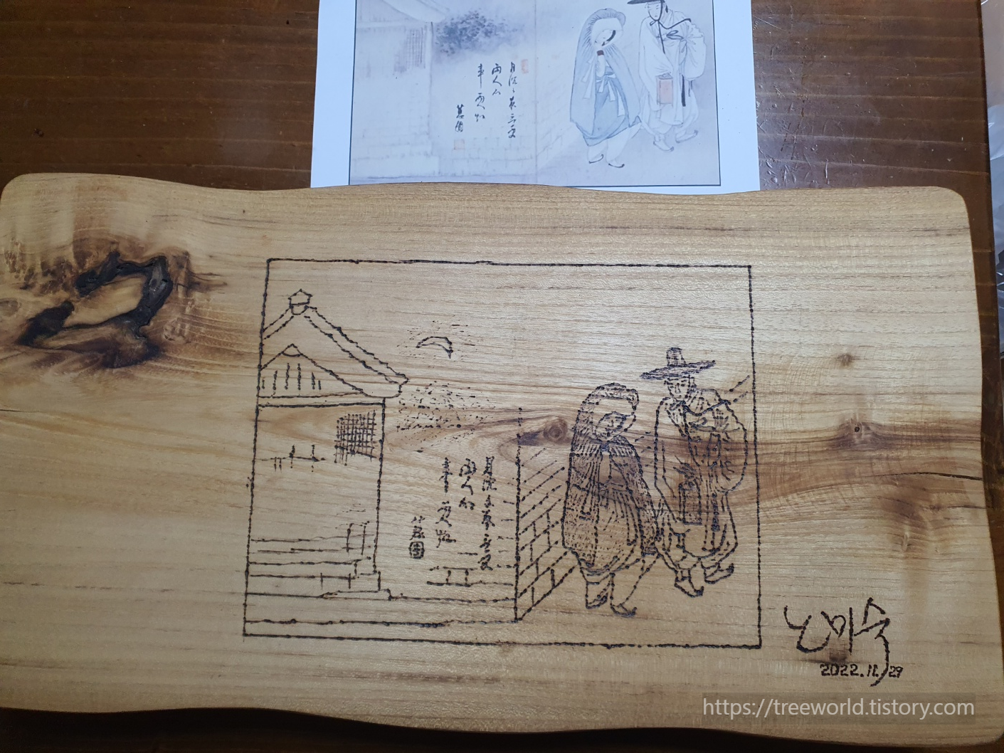이그림을 모사해서 월하정인 찻상을 만들었습니다.