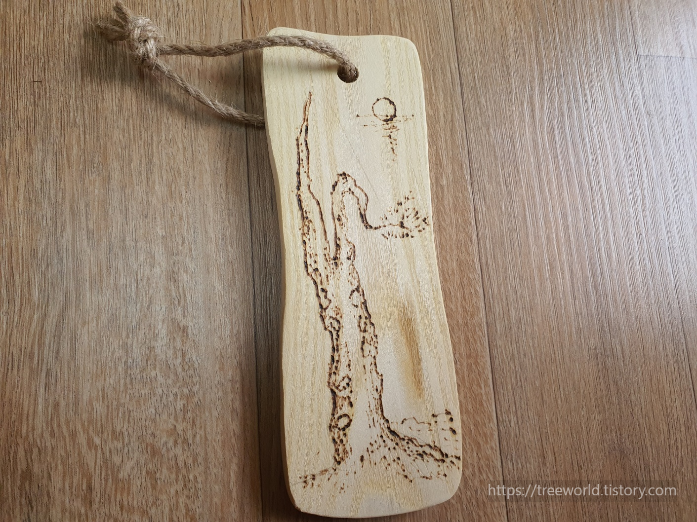 인두로 목판을 할 때는 나무의 재질에 따라 전혀 다른 느낌을 줍니다.