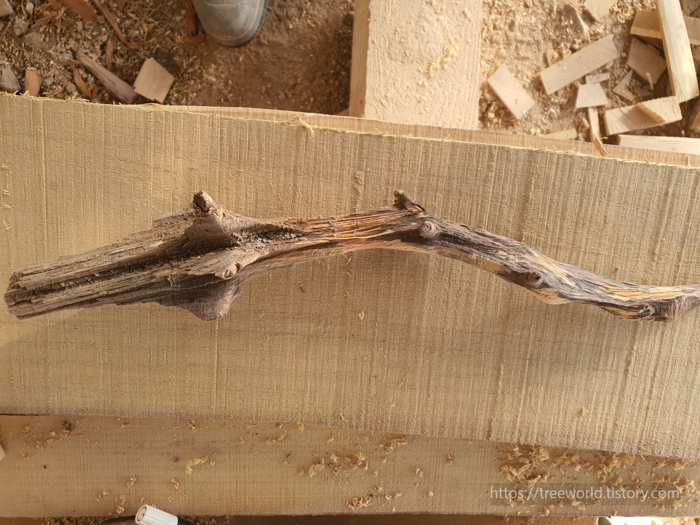 처음 주워 왔을 때는 정말 썩은 나무였는데 조금씩 갈아보니 본색이 나타났습니다.