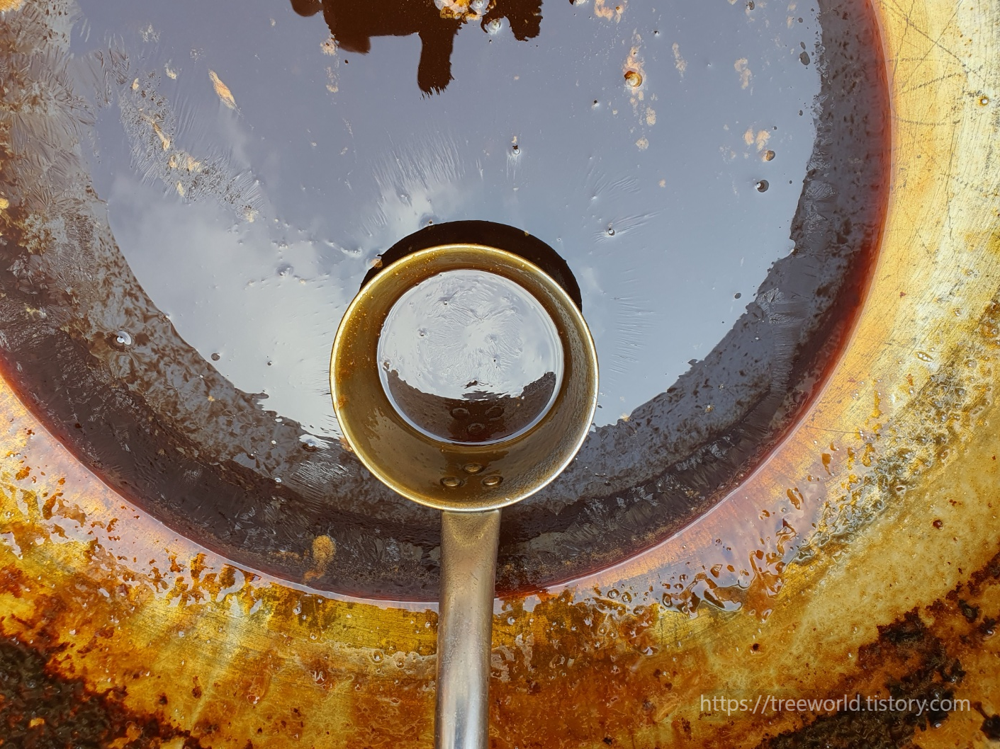 한 3~4시간 끓이다 보면 이런 색이 나오고 거품이 일기 시작합니다. 이때가 가장 조심해야 할 시기입니다.