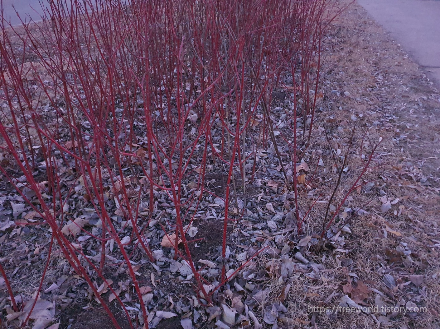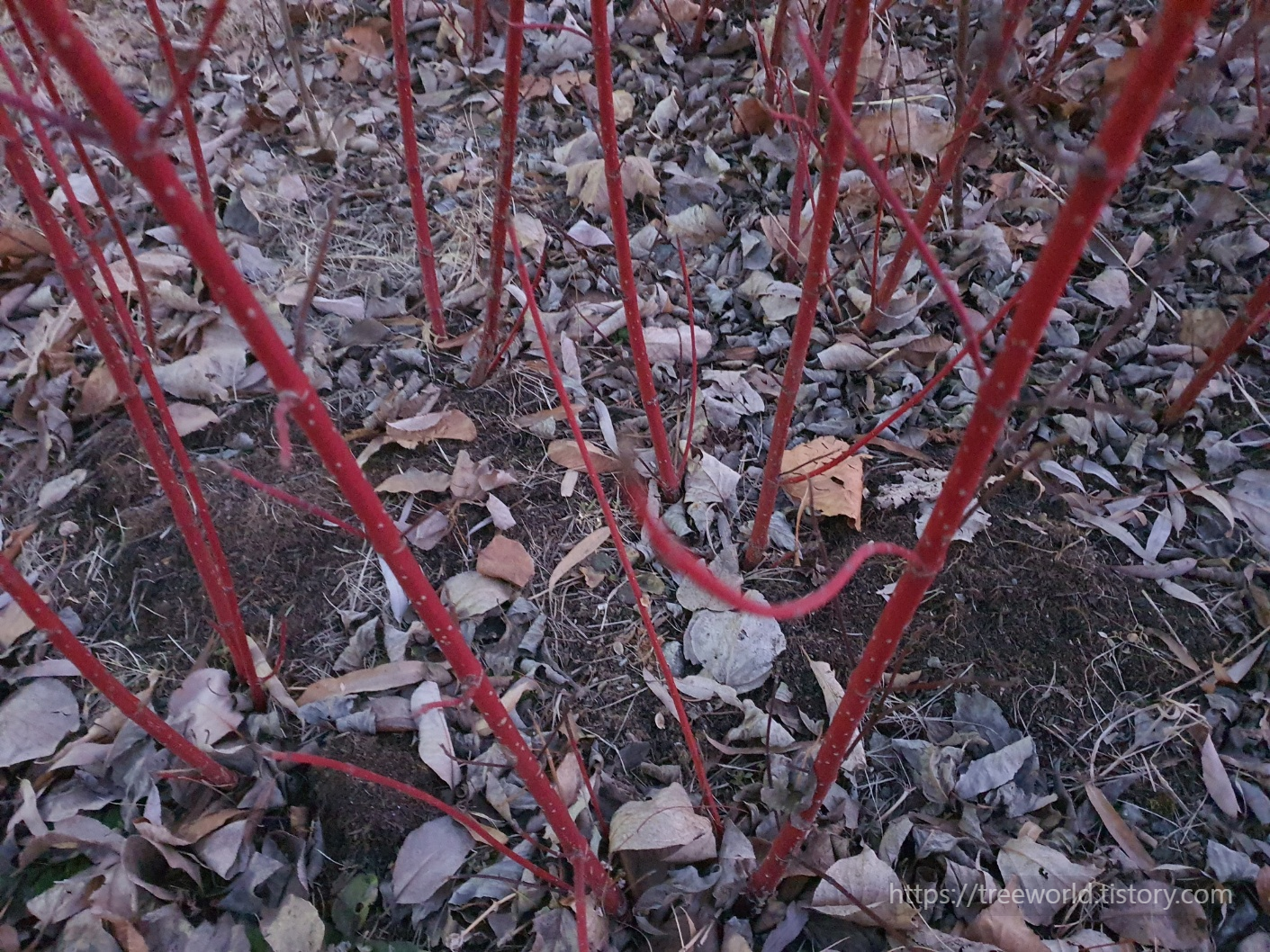 흰말채나무를 구별할수 있는 특징은 수피입니다. 수피는 붉은색입니다.