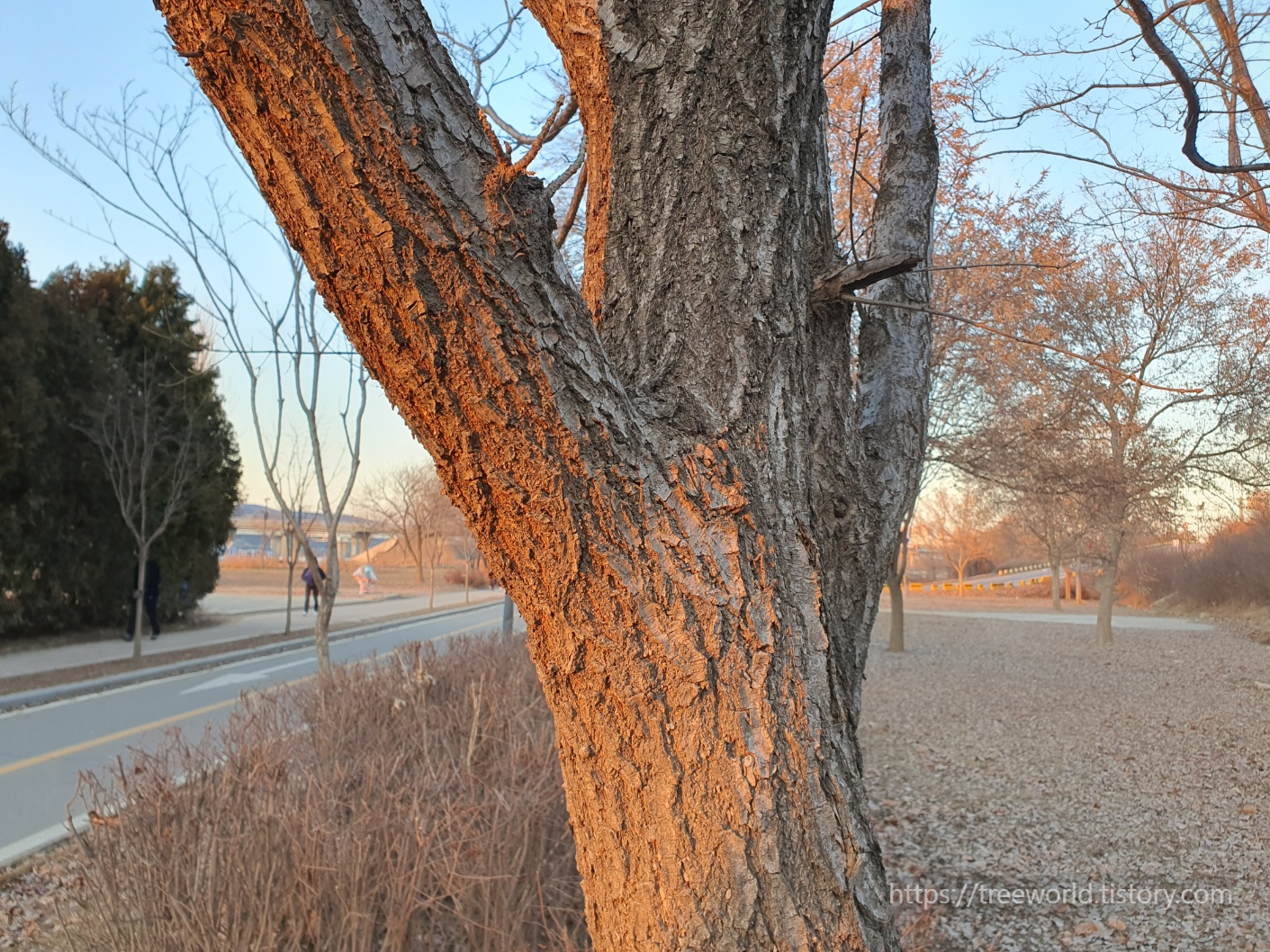 수고는 20m까지 자라며 수피는 은행나무와 비슷한 진한 회색입니다.