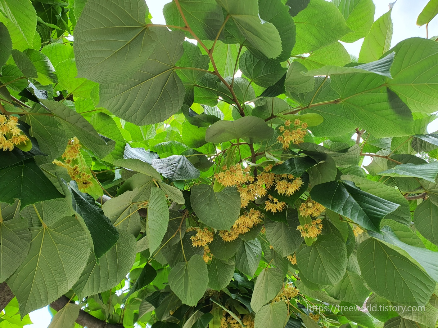 잎이 크고 뒷면에서 보면 하트모양입니다. 그리고 꽃이 취산꽃차례라고 하여 줄기 끝에 한송이가 달리고
