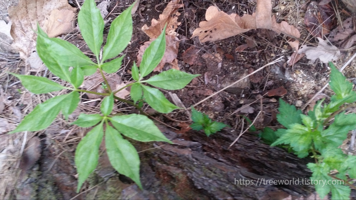 꽃대의 길이도 잘 봐야 합니다. 인삼은 꽃대가 무척 깁니다. 그래서 잎과 줄기와 꽃대를