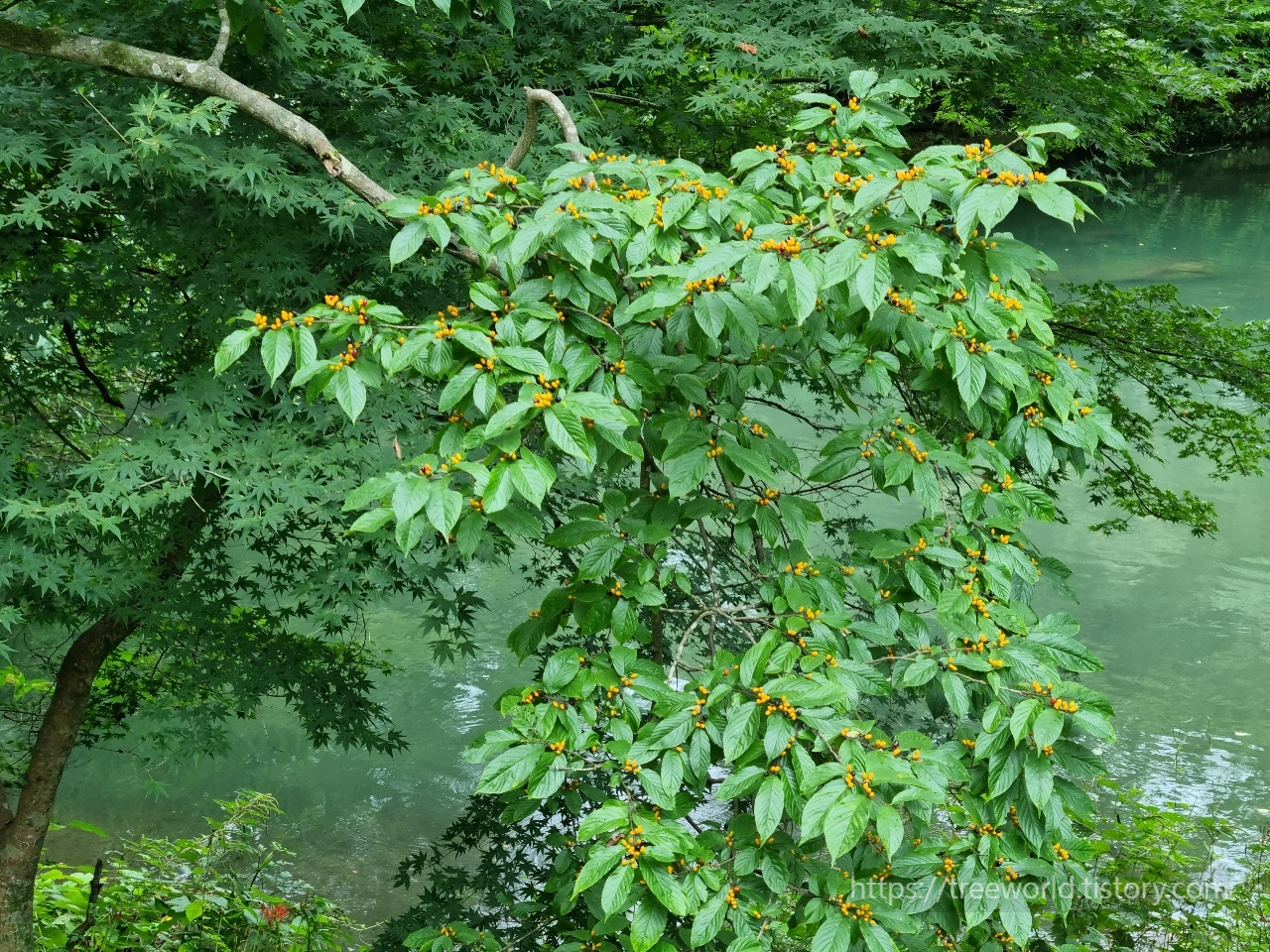 수목감별을 위한 특징은 키가 작은 소교목과 약간털이 있는 긴타원형 잎과