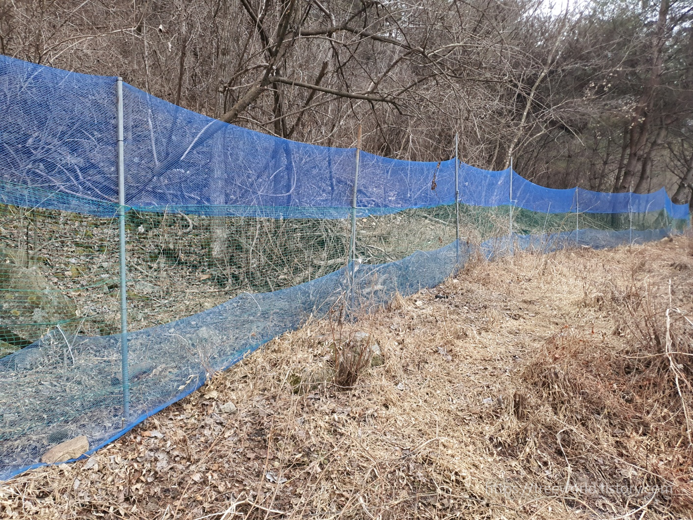 그리고 제일밑에는 뱀방지용 그물을 50cm 높이로 별도로설치하고 땅에 묻어 고정하였습니다
