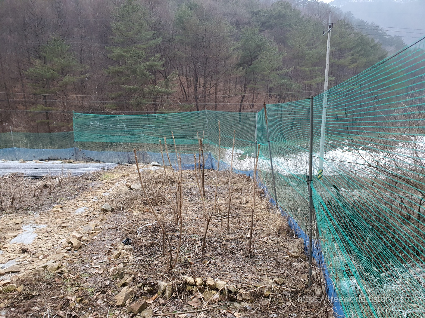 작년에는 고라니방지용 펜스를 1단 1.5m높이로 쳤습니다.