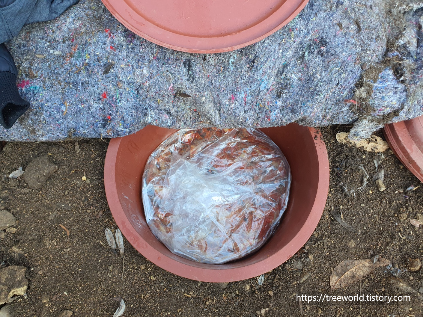 저장 김장독 김치는 속에는 포기김치를 넣고