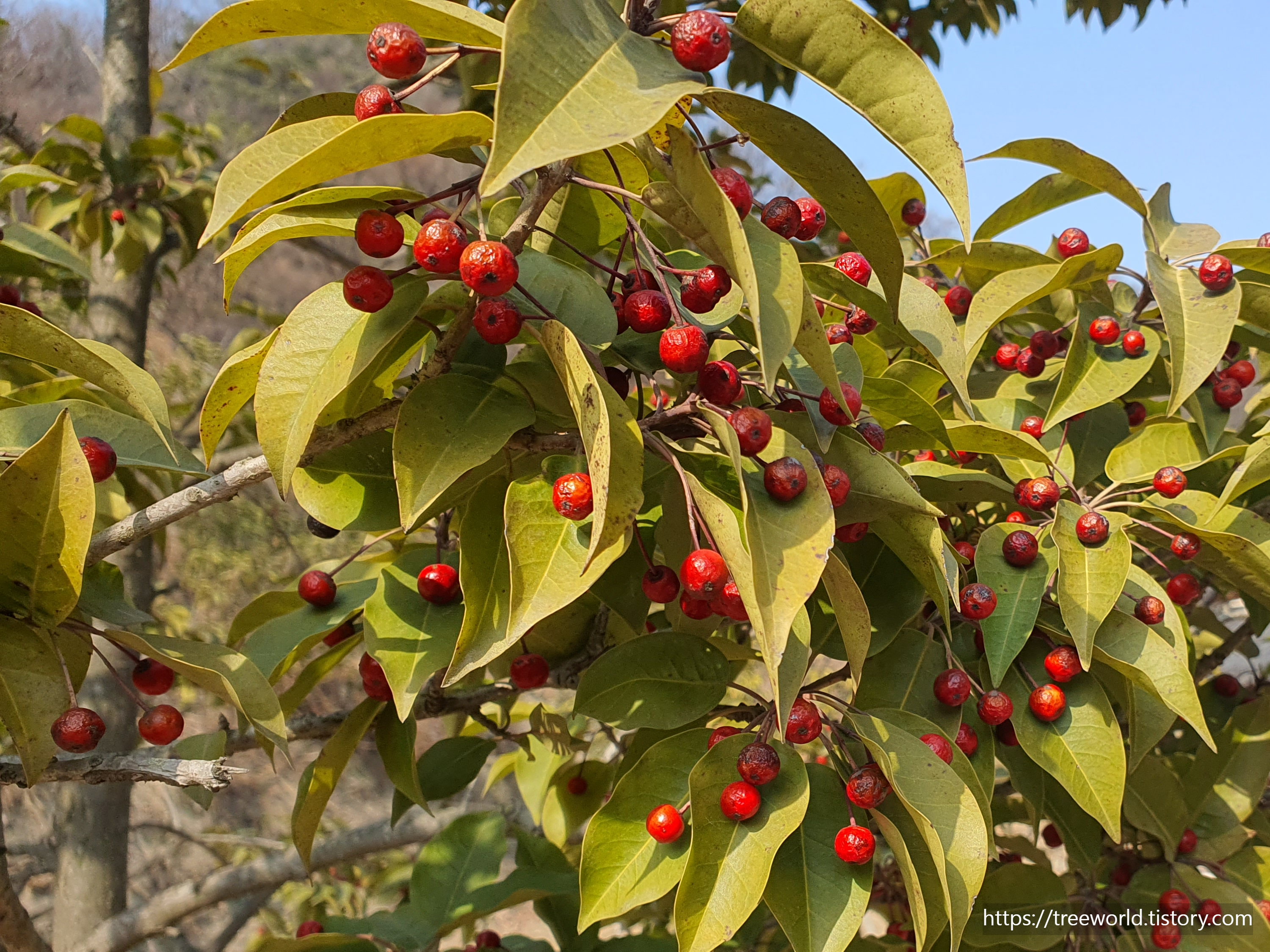 수목감별 포인트는 상록의 잎과 붉은색 열매입니다.