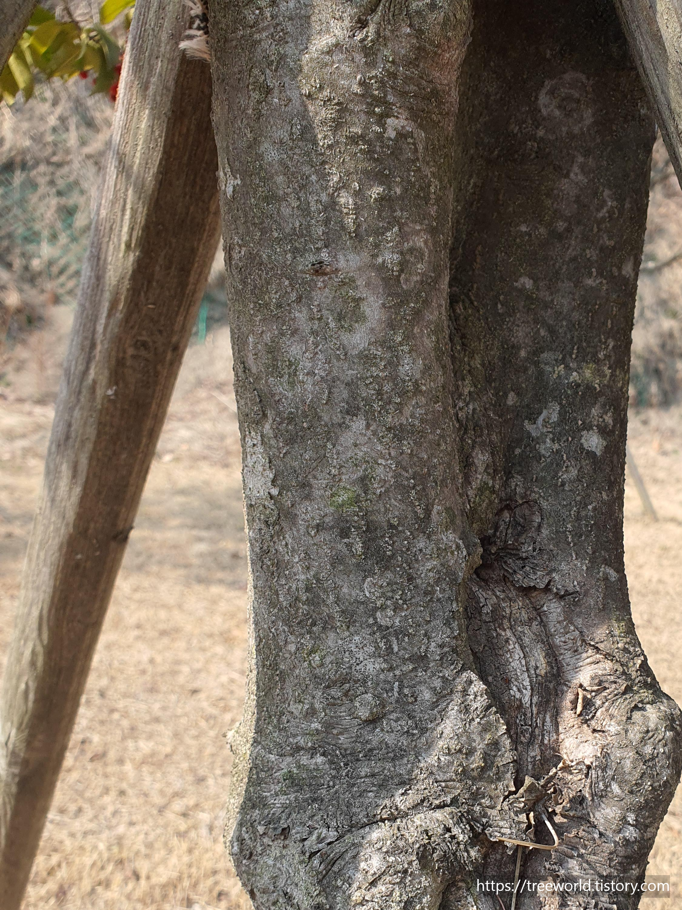 먼나무는 수피가 얇아서 여름에 피소(볕데기)가