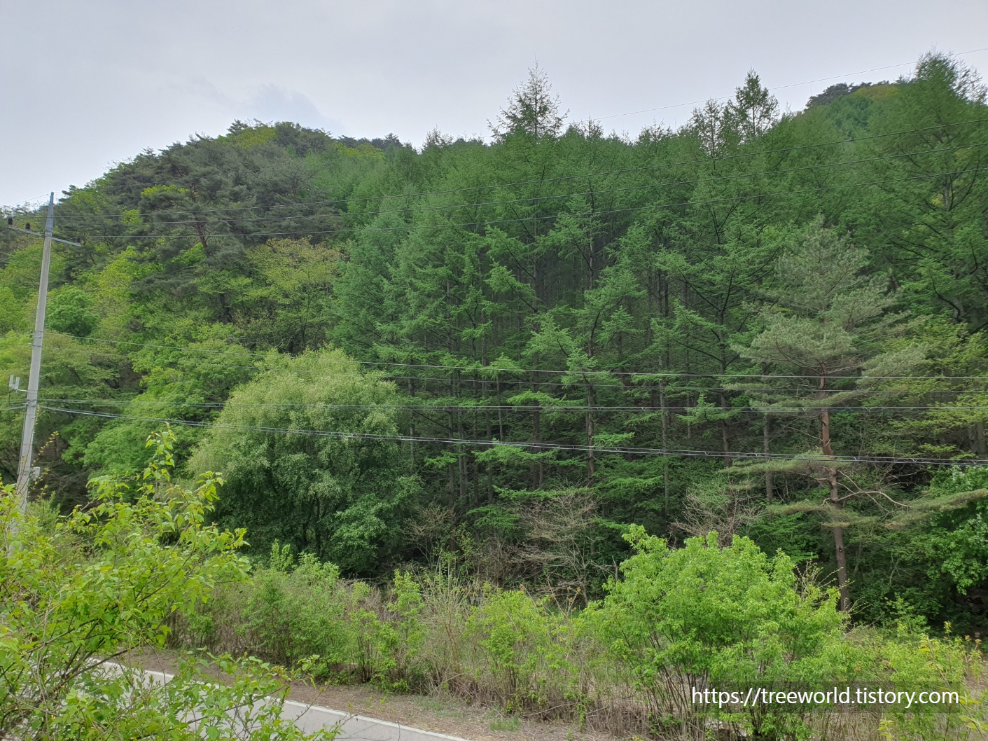 며칠 전까지만 해도 낙엽송 노란 새싹이