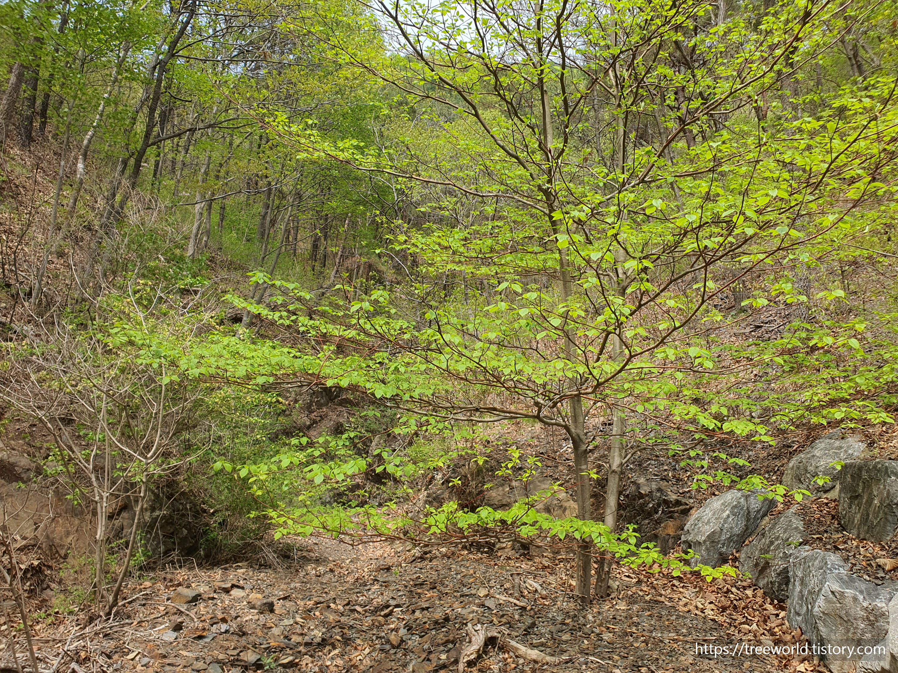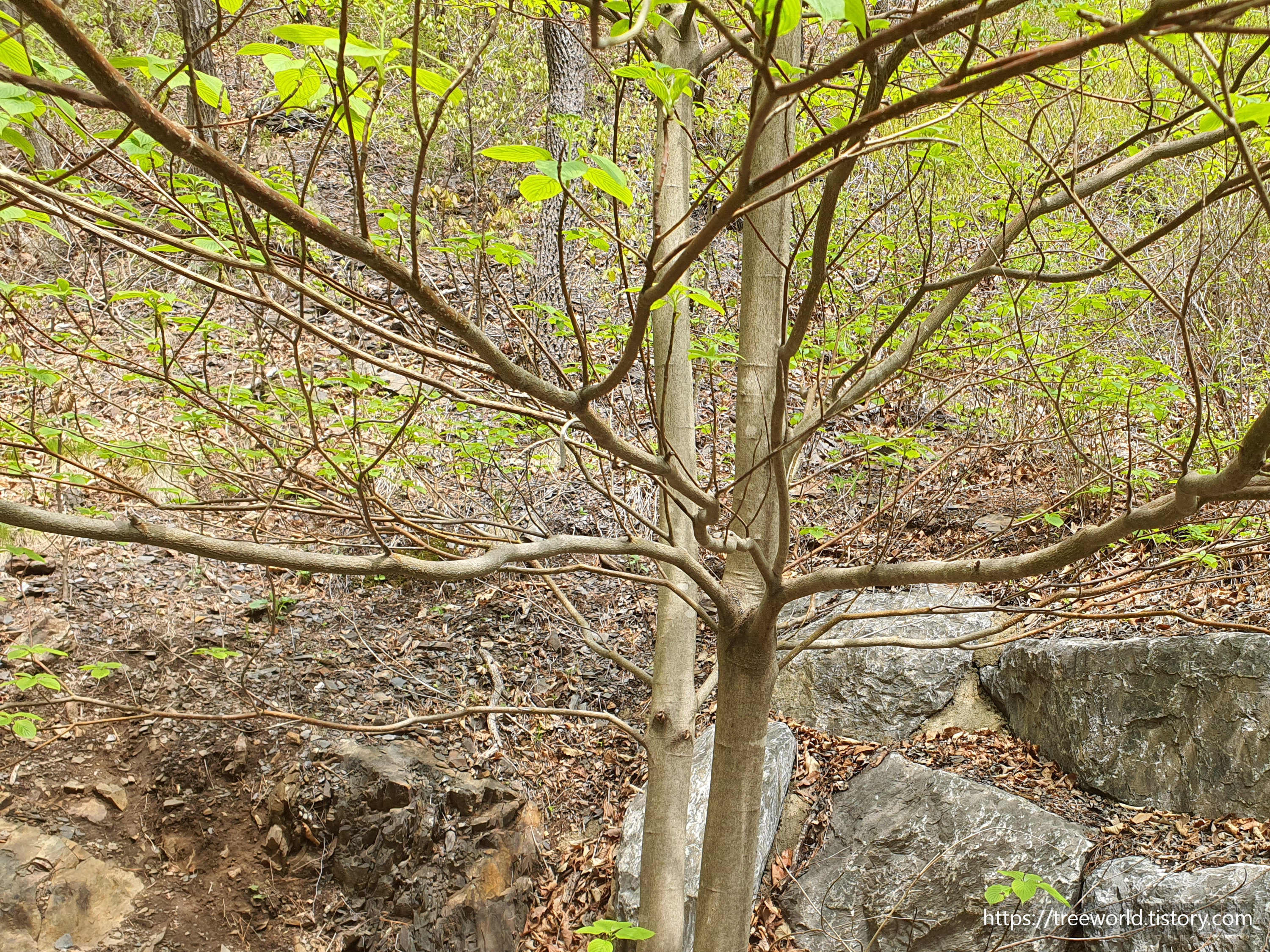 이른 봄에 찍은 층층나무라 꽃이 개화 전입니다.