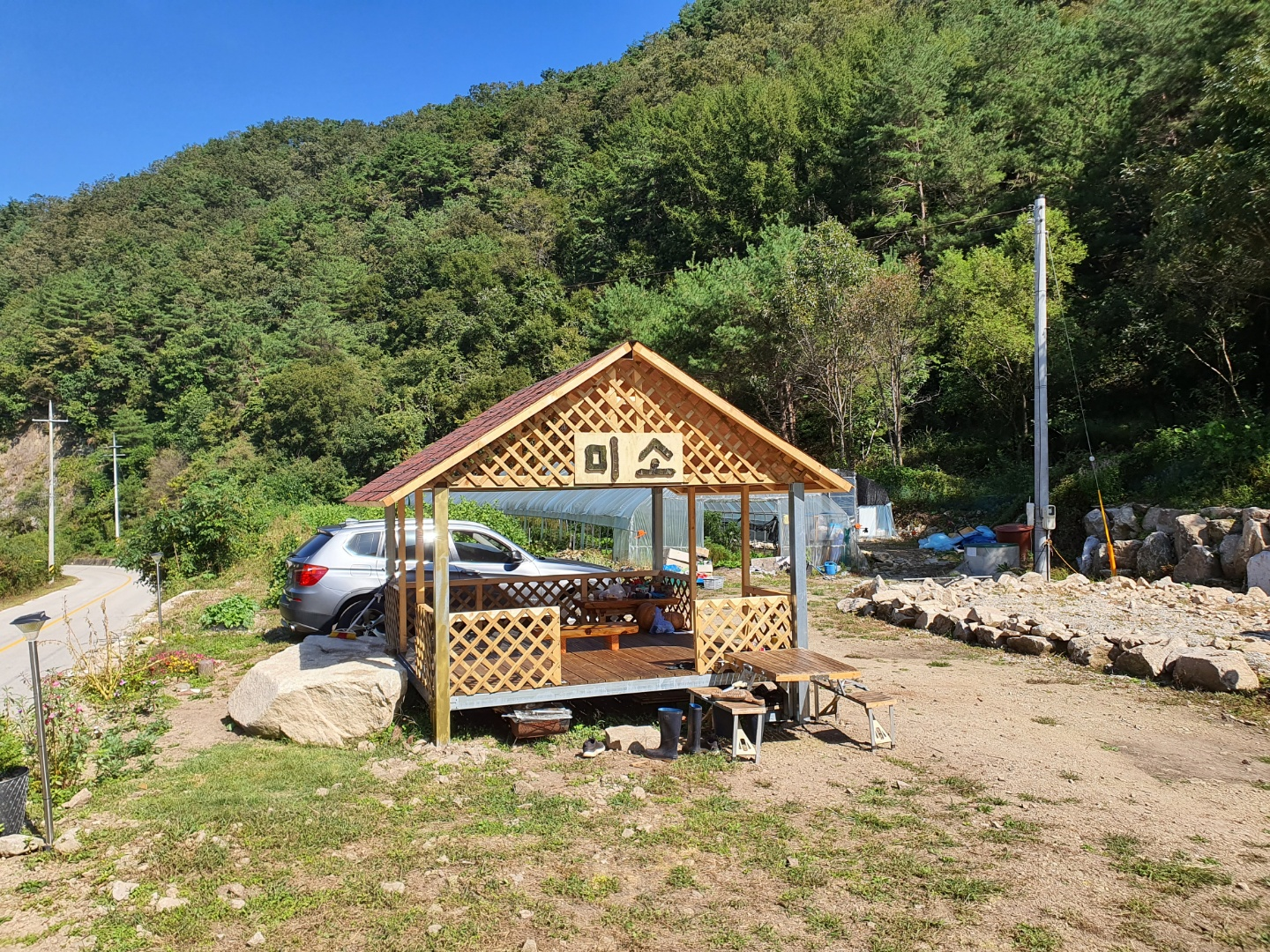 올여름 유난히 더워 일하다 쉴 곳이 없어 매우 고민한끝에 정자를 짓기로 마음먹고 3일 만에 지은정자이다.