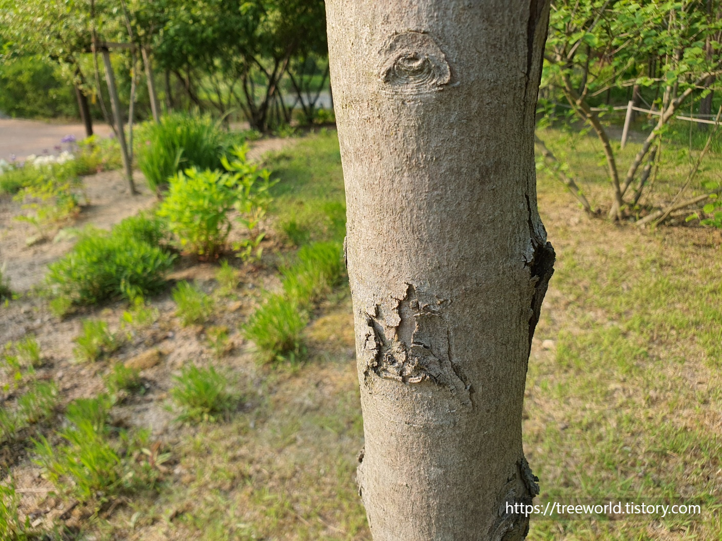 은단풍 수피는 길게 한줄기로 올라가며 회색에