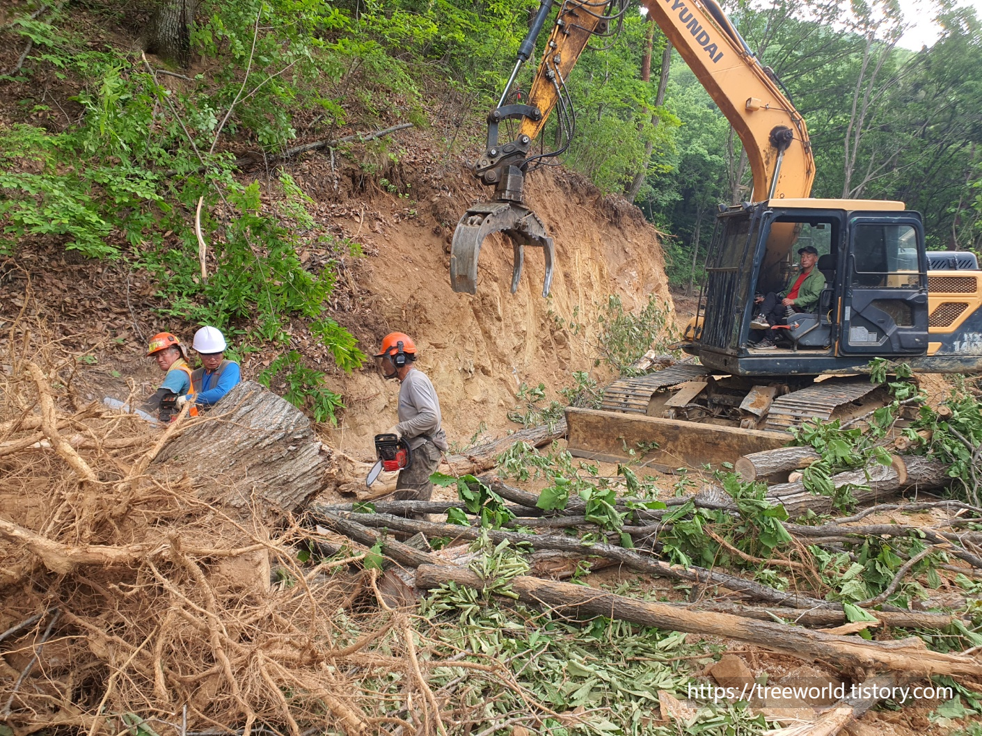 지금의 작업은 자른나무 즉 지장목과 벌근을 정리해야