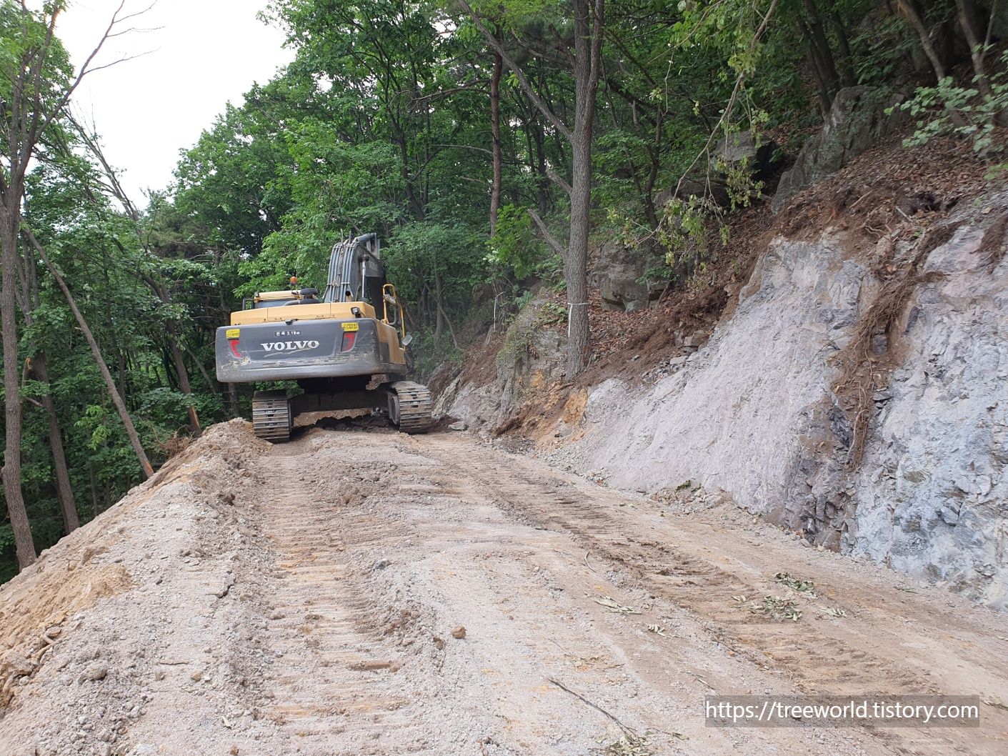 성토를 하면서 굴삭기 텐 이 개략적인 길을