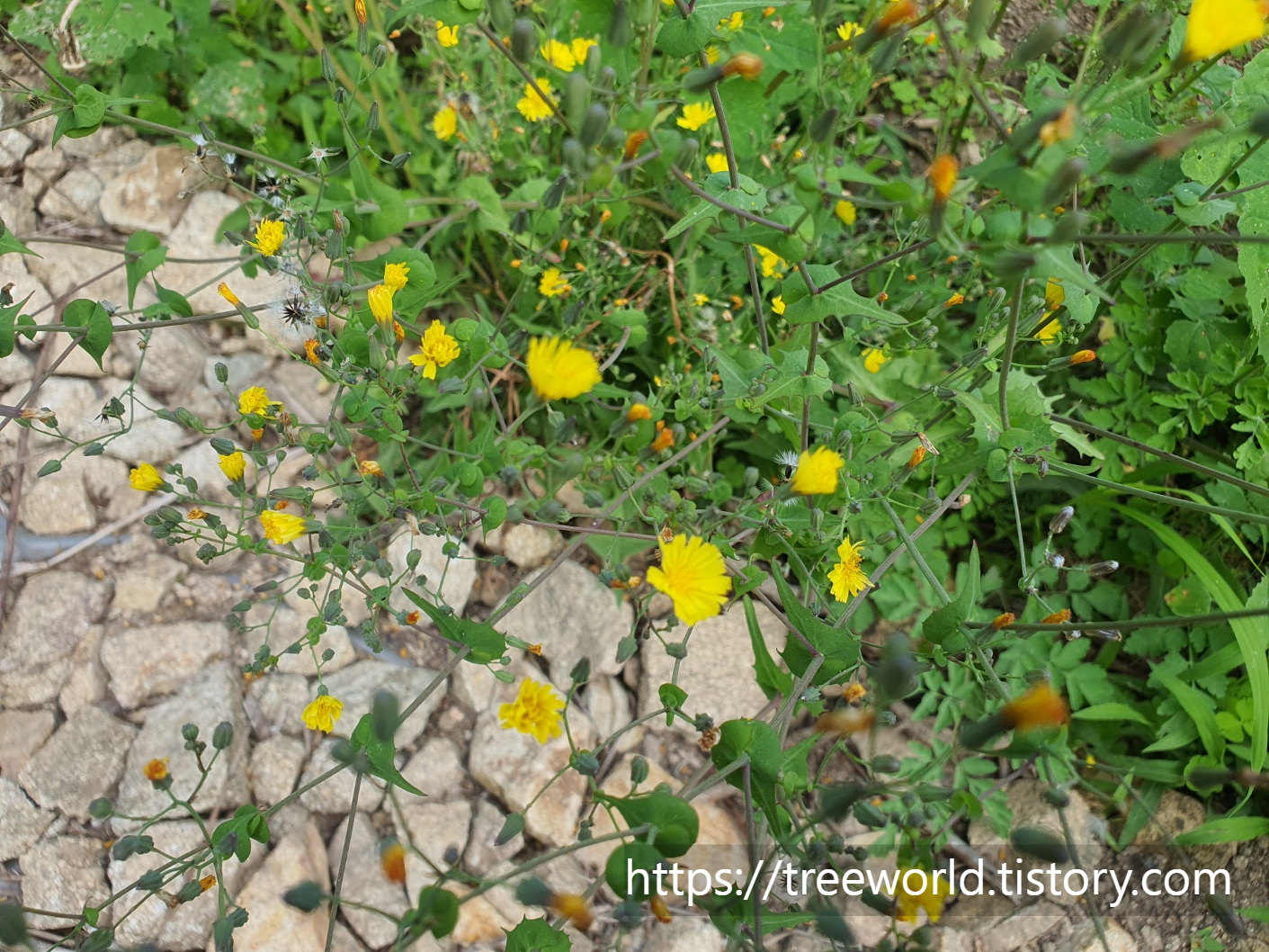 고들빼기가 나고 또 꽃이 피고 있습니다.