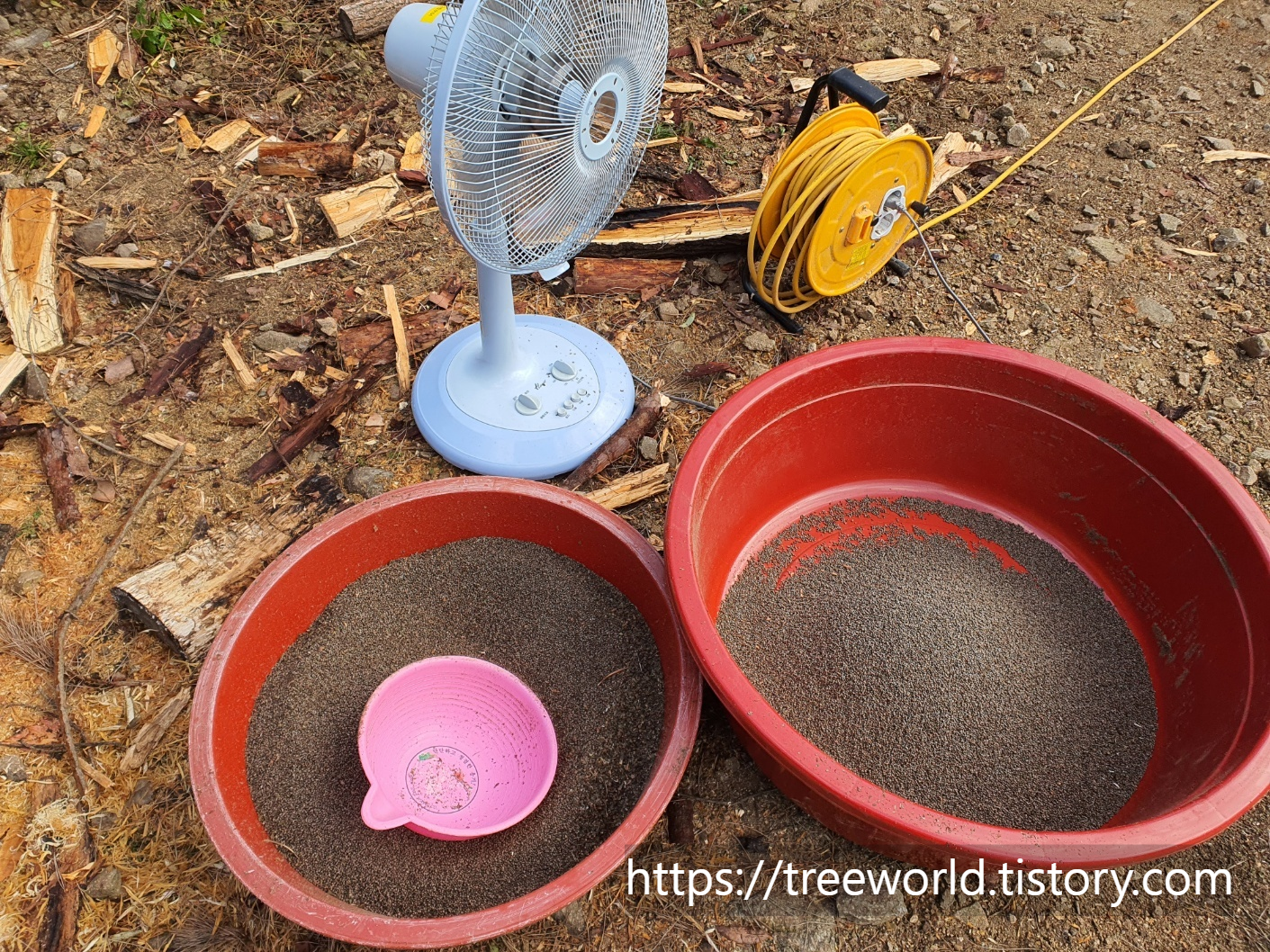 수확한 들깨는 선풍기를 활용해서 이물질을