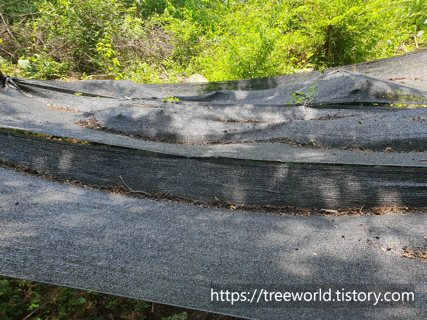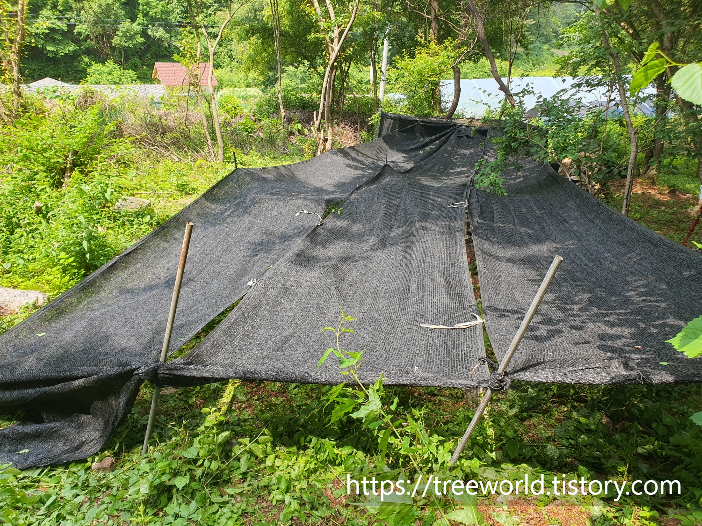 요량으로 뽕나무 아래에 인삼천을 설치 해보았습니다.