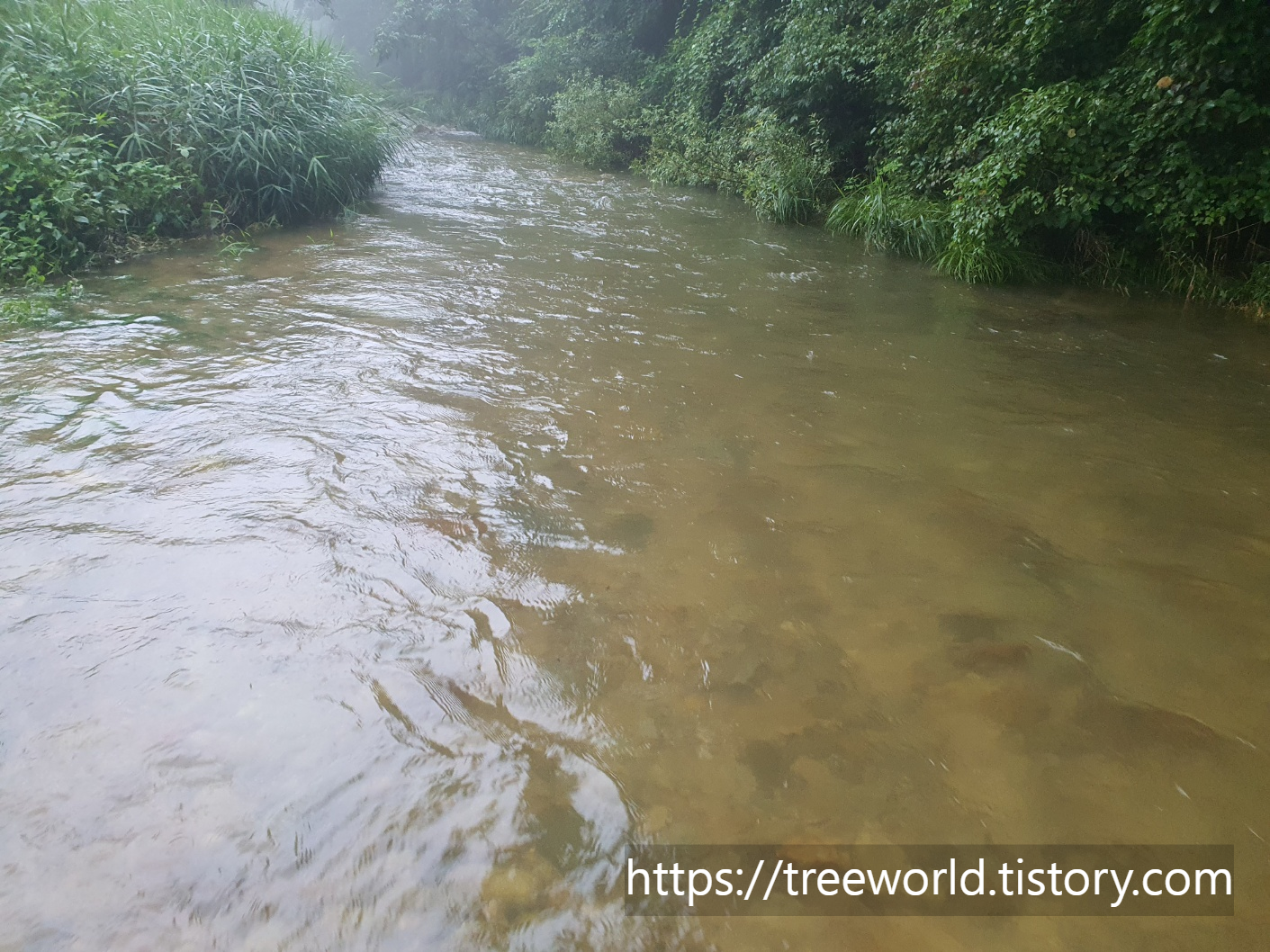 물안개가 자욱하게 내려있고 비는 부슬부슬