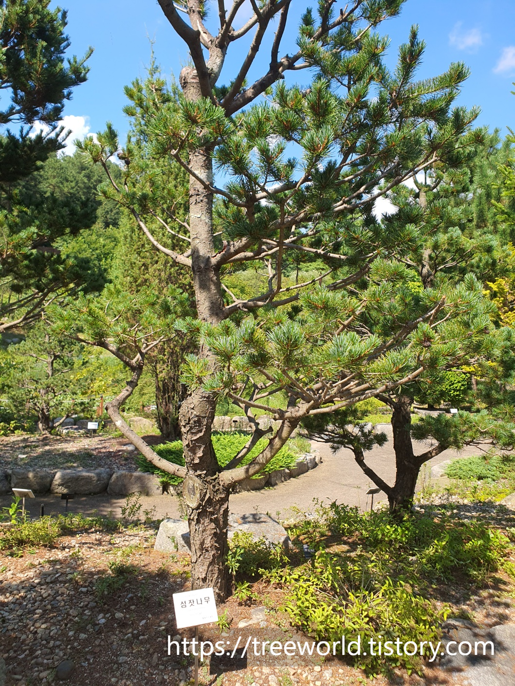 섬잣나무 수피는 회갈색이며 매끄럽습니다.