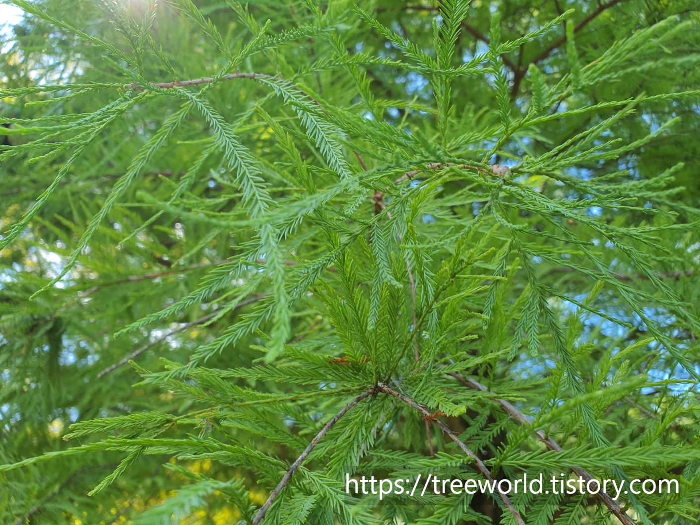 낙우송잎은 작은며 어긋납니다. 잎의 뒷면에는
