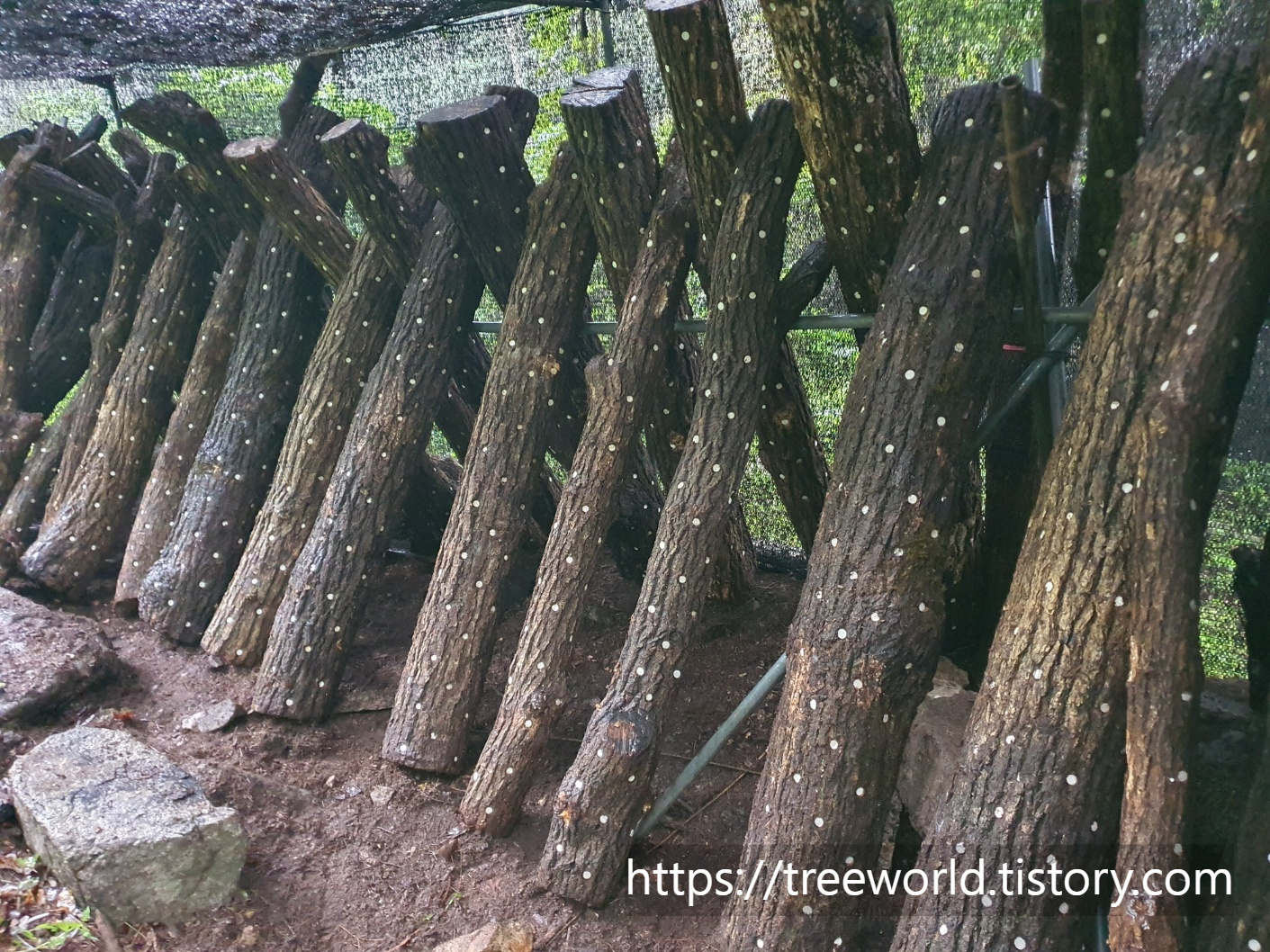 원목 표고버섯 재배에서 가장 중요한 원목 세우기