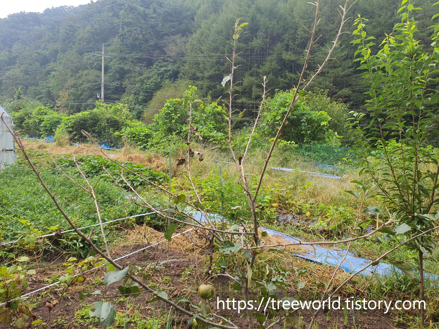 아침에 밭에 가니 나뭇잎이 하나도 없어