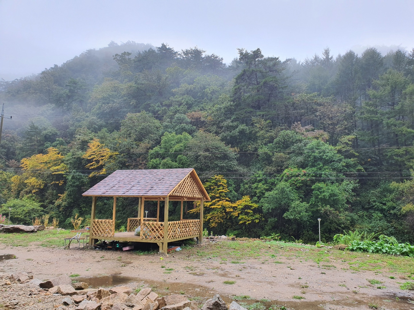 오늘은 10월3일 입니다. 밖에 비가 제법 옵니다. 가을비 치고는 많이 오고 있습니다. 비가 오니 집 앞 정자가 제법 운치있어 보입니다.