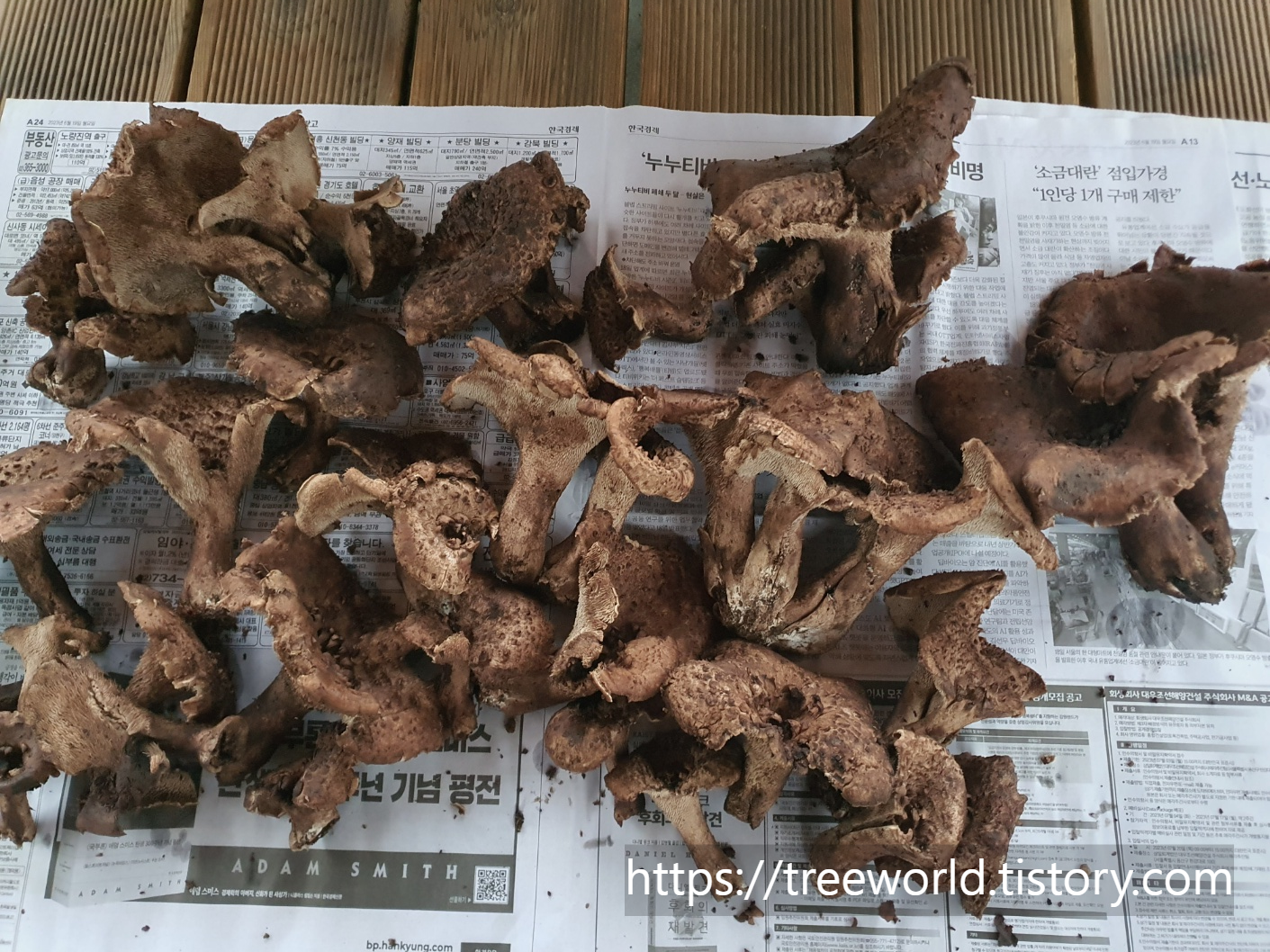 벌써 삭은 능이도 있을 정도로 일찍 피었나