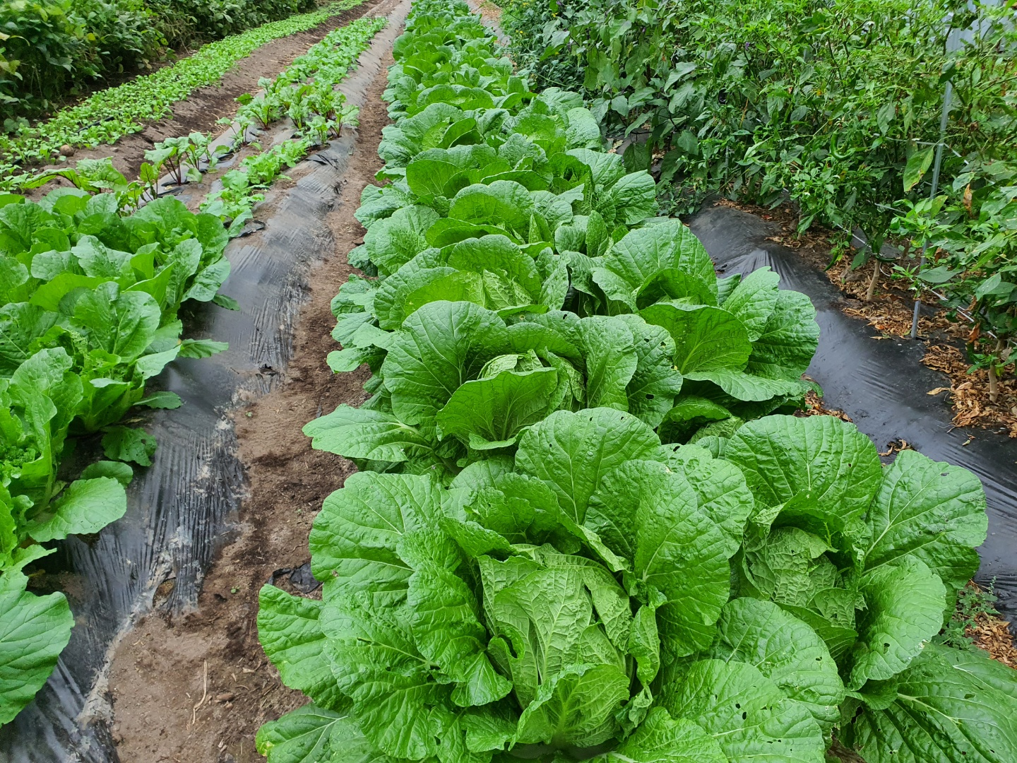 저는 8월10일 1차 모종을 심었고 위에 보이는 배추는 8월말에 다시 2차로 심었습니다. 비닐하우스라 늦게까지 수확가능하다는 생각으로 늦은 모종을 사서 심었는데 이제 한달 정도 되었습니다. 제법 자태가 멋있습니다. 심기전에 토양살충제를 살포하고 요소비료도 조금 살포했습니다. 그리고 심고 2주정도 되어서 배추 흰나방과 거세미 나방 관련 살충제와 영양제 수관살포도 했습니다. 그래서 인지 벌레도 없고 잘 자라고 있습니다.