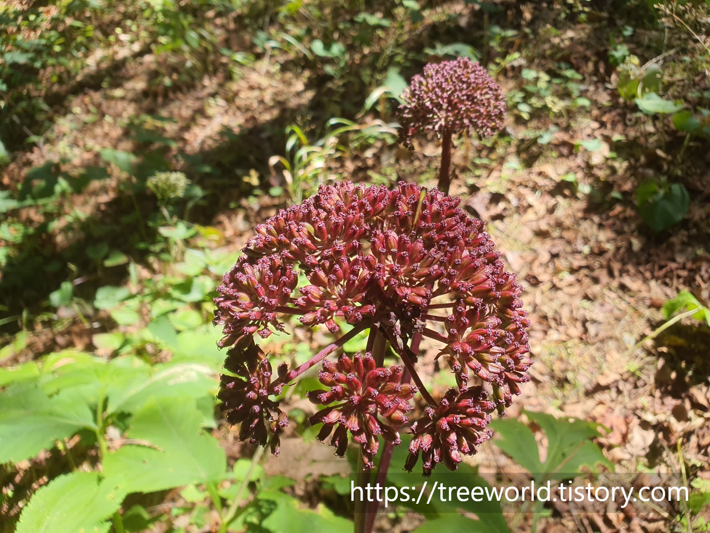 입니다. 당귀는 줄기와 잎자루에 자주색선이
