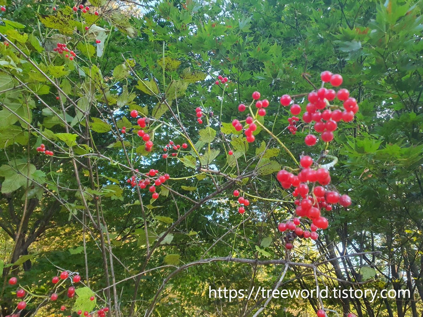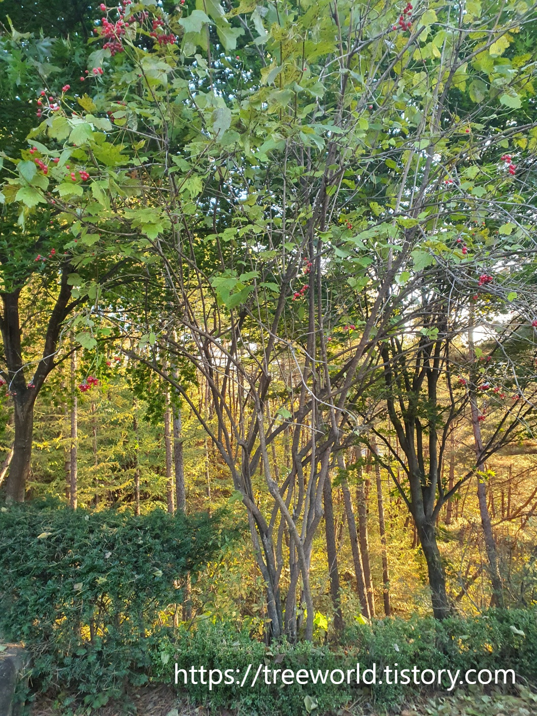 봄에 흰꽃이 피고 가을에 붉은색으로 익습니다.