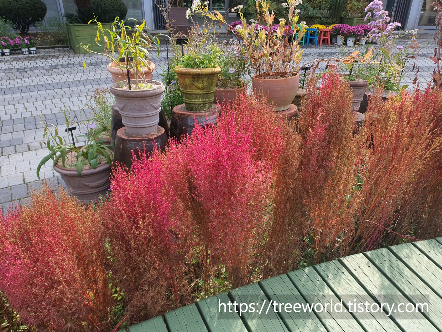 주목과 가을꽃들이 서로의 예쁨만 갖은 체