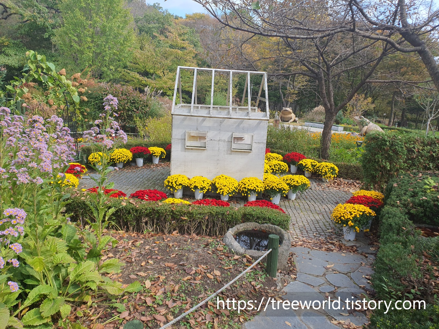 아름다운 국화로 둘러 쌓인 작은집입니다.