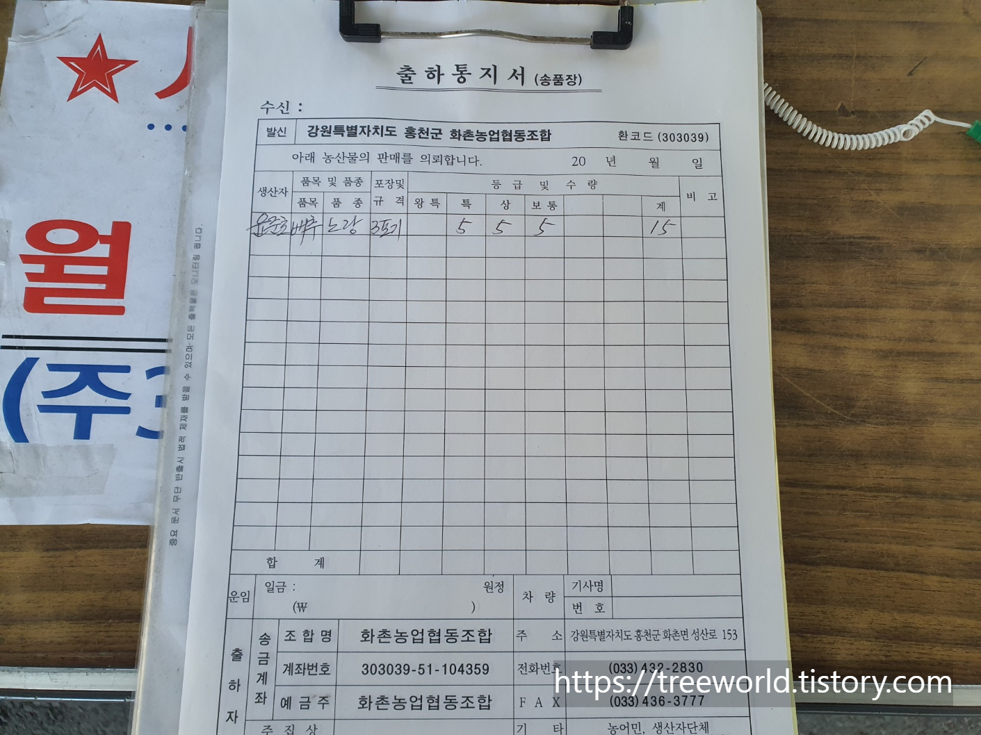 농산물 수확철이 되면 농협은 지역주민 누구 것이나 양의 많고 적음에 관계없이 농산물 소량 경매출하를 위하여 매주 최소 월, 수, 금 3일은 출하를 해주고 있습니다. 출하시장은 몇 군데로 나누어 차량이 가는데 본인이 선택가능합니다. 저는 가락시장을 선택했습니다.
