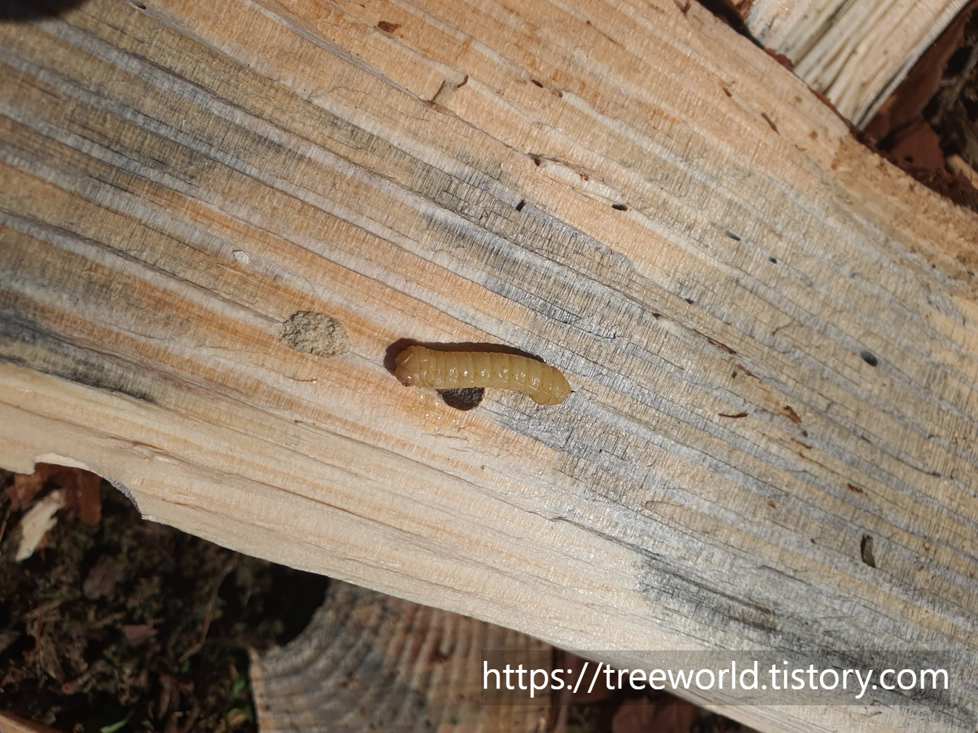 곳곳에서 북방수염하늘소 유충이 나옵니다.