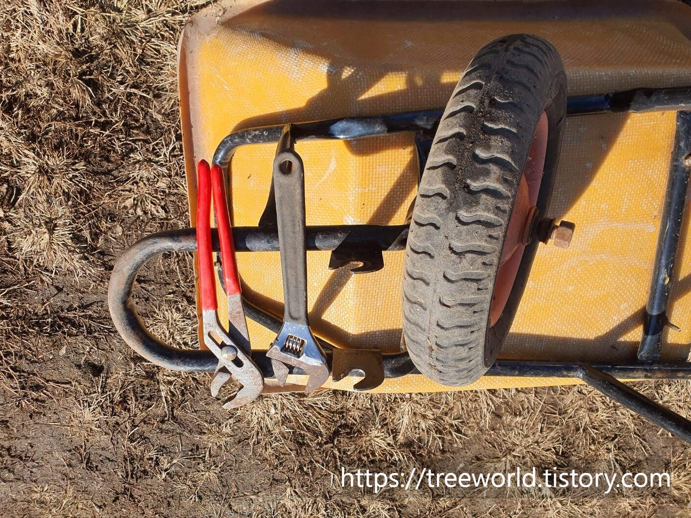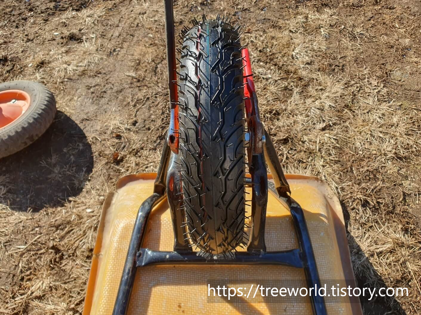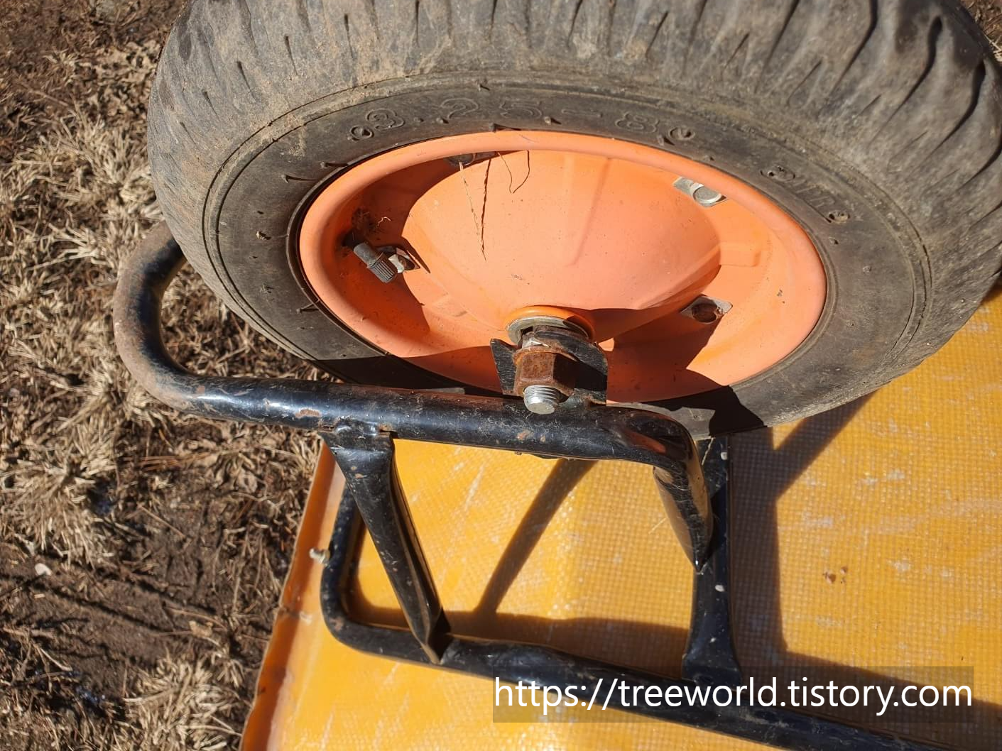 밭농사용 손수레 바퀴 교체하는 법은 그리 어렵지