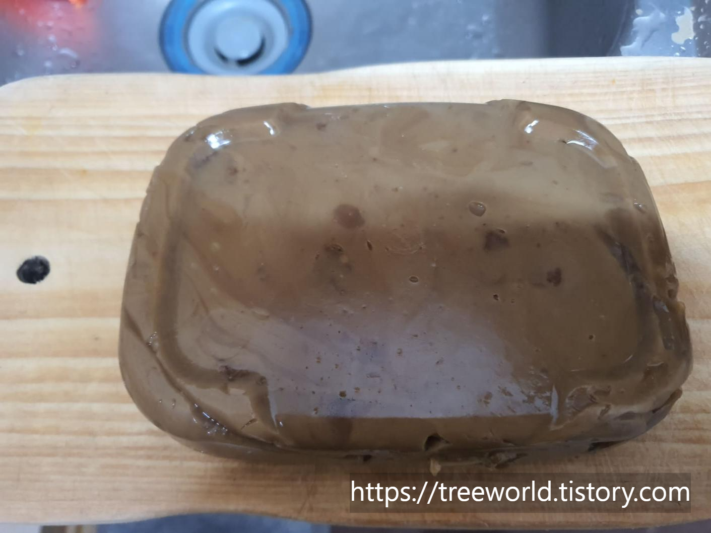 마지막에 매우 열심히 저어야 되는데 그렇기 않아서 살짝 눌어붙은 도토리묵 입니다. 맛은 살짝 좋아진 느낌입니다. 감사합니다