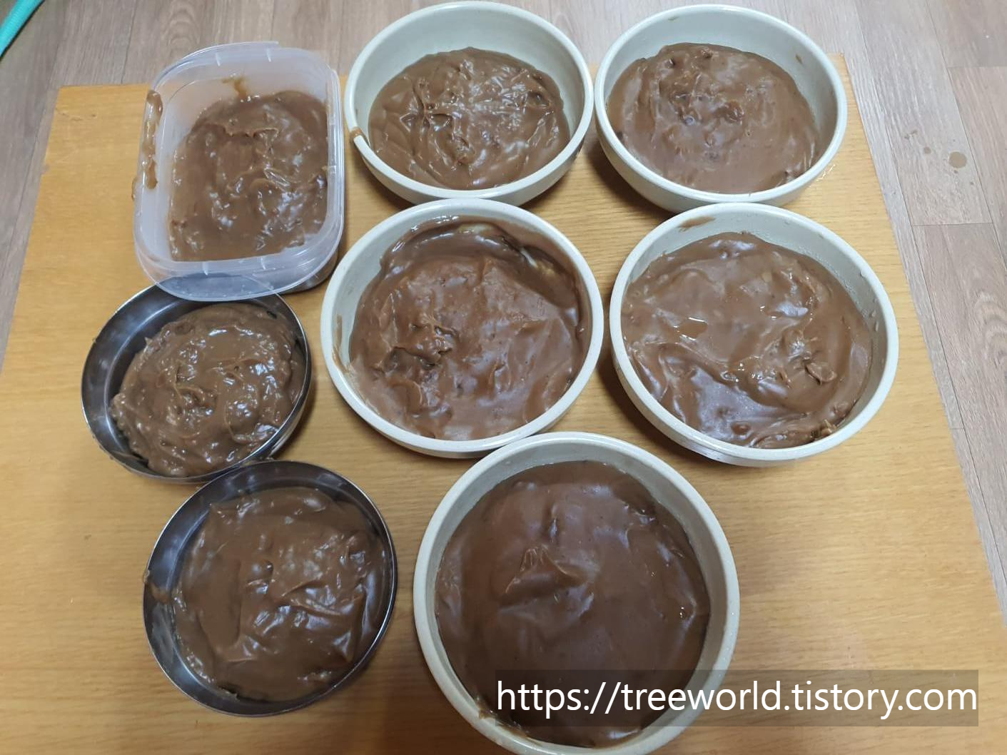 맛있는 도토리묵 만들기의 마지막 단계는 적당한 크기와 형태가 있는 그릇에 부어 식히면 원하는 크기와 모양으로 만들어