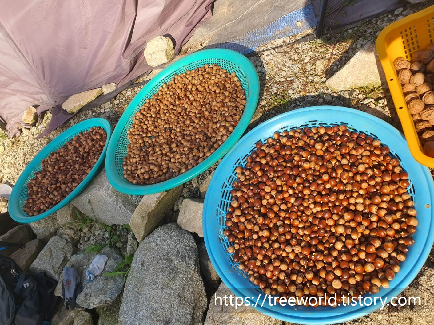 먼저 산에서 채취해 온 도토리는 햇볕에 1주일 정도 말려서 건조 시켜야 합니다 도토리는 상수리와 굴참나무 도토리가 제일 크고 맛이 좋다고 합니다.