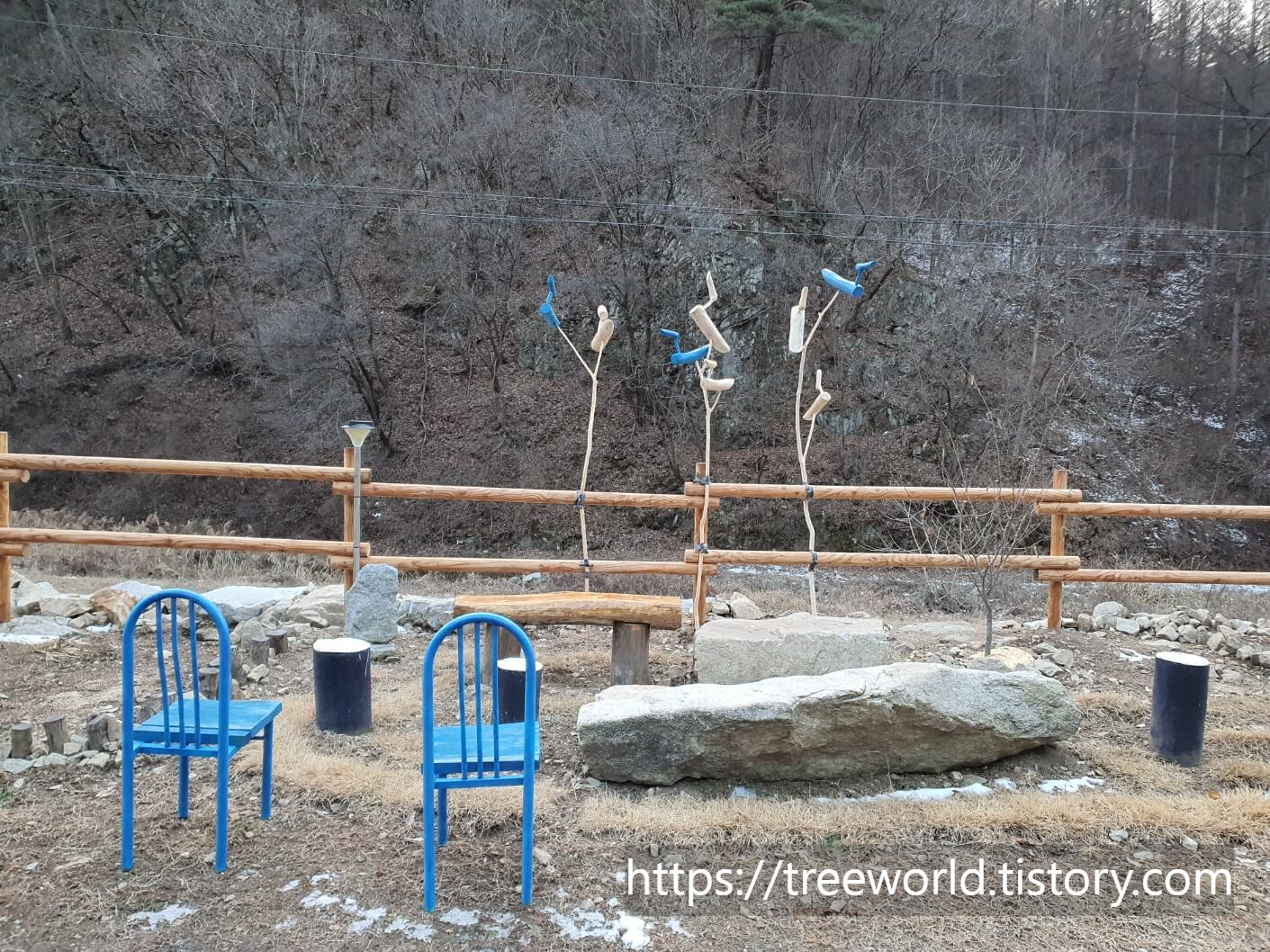 한 개의 기둥에 2~3마리씩을 설치하였습니다. 그리고 그중 한 마리는 올해가 청색의 해라 하여 청색을 칠한 청솟대를 만들었습니다. 청일점이 있어서 인지 전체적인 풍경도 더 멋있어 보입니다. 그리고 솟대는 사 방향으로 설치를 하였습니다. 모든 방향에서 행운이 들어올 수 있도록........... 감사합니다.
