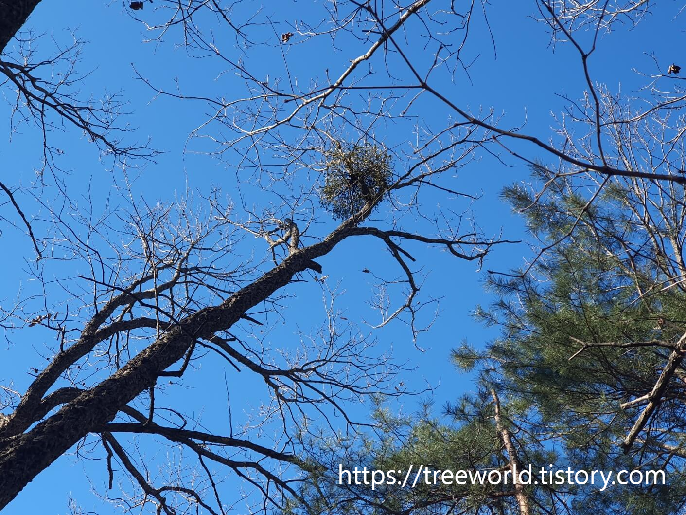 겨우살이는 참나무 등에 기생하여 수액을 빨아먹고사는 기생식물입니다. 또한 스스로 광합성도 하여 영양소를 만들어내므로 반기생식물로 보아야 합니다. 열매는 겨울철 산새들의 중요한 먹이가 됩니다.