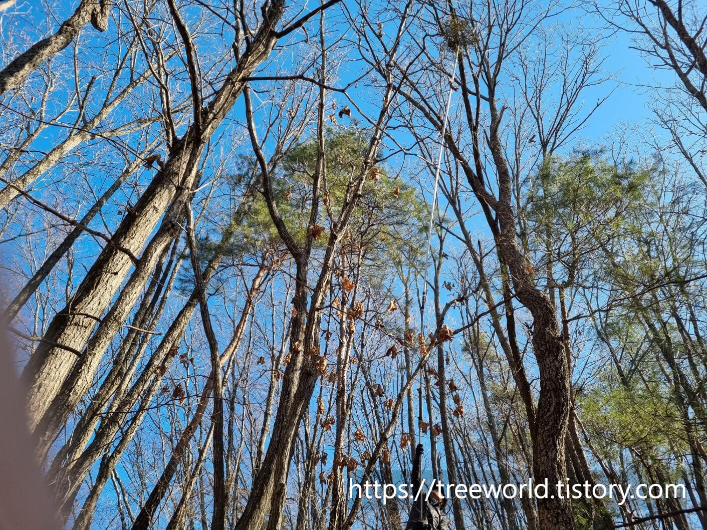 겨우살이 채취방법에 대하여 알아보겠습니다. 겨우살이는 작은 나무에는 기생하지않고 통상 중경목(18~28cm) 이상의 나무에 기생합니다. 나무의 수액을 먹으면서 자라기 때문에 작은 나무에서는 기생이 안됩니다. 그러니 자라는 위치도 지상에서 최소 10m 이상은 됩니다. 채취를 하려면 최소 10m 이상되는 긴 전용장대가 있어야 합니다. 그리고 끝에는 낫을 묶거나 고정시켜서 채취하게 됩니다. 물론 나무 끝까지 올라가서 딸수도 있지만 목숨이 담보되어야 하니 절대 안 됩니다. 철물점에 가면 알루미늄으로 되어 연결할 수 있도록 되어 있는 기성제품이 있으니 구매하여 사용하시면 15m까지는 가능합니다.