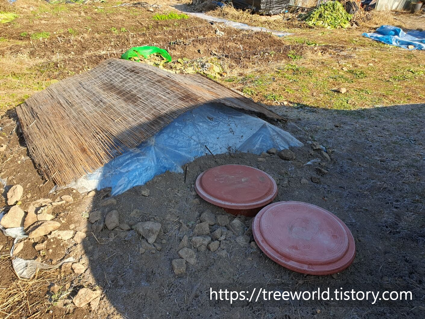 동치미 담그는법의 마지막은 잘 숙성될 수 있는 땅속 구덩이를 파는 것입니다. 잘 담가도 땅속에서 얼어버리면 맛이 없어지고 숙성이 안됩니다. 땅속에서 적어도 겨울을 나야 하기 때문에 구덩이 파는 것은 아주 중요합니다. 지역별도 다르지만 땅속 결빙점이 있습니다. 결빙점 보다는 더 깊이 파야 얼지 않습니다. 강원도는 통상 90cm 정도 됩니다. 그리고 소금농도도 있으므로 보온재로 적당히 감싸두며 잘 얼지 않습니다. 2개월 정도 숙성 후 먹는 것이 가장 맛이 있는 거 같습니다. 감사합니다.