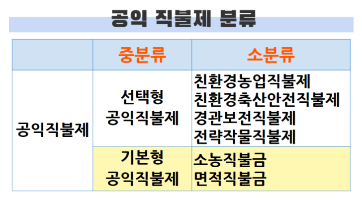 농업직불금이란 농업활동을 통해 환경보전, 농촌공동체 유지, 식품안전등의 공익기능을 증진하도록 농업인에게 보조금을 지원하는 제도로 2020년 4월 농업소득 보전에 관한 법률 시행령이 전부개정되어 동년 5월 1일부터 시행된 제도입니다.