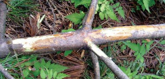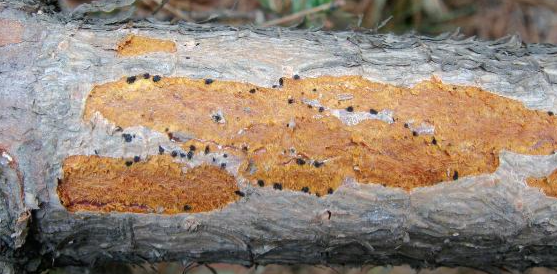 소나무류 피목가지마름병의 진단은 일반적으로 햇볕이 잘 들지 않아 수세가 쇠약하거나 뿌리발육이 부진한 장소에서 일부가지는 죽는 피해를 줍니다. 그러나 가을철 가뭄과 겨울철 이상기온등으로 동해를 입은 경우 수세가 약해지면 나무의 가지 및 줄기로 병원균이 이동하여 집단 발생됩니다. 수목병리학에서 소나무류 피목가지마름병 병원균은 건강한 나무에는 침입할 수 없는 약한 병원성을 가지는 2차 병원균으로 분류되어 있습니다. 한편으로는 소나무류 피목가지마름병 병원균은 죽은 가지 및 줄기의 목부조직을 분해하여 토양 내 양분의 순환을 촉진시키는 분해자이기도 합니다. 소나무류 피목가지마름병 병원균은 건강한 나무에는 내생균으로 존재 합니다.