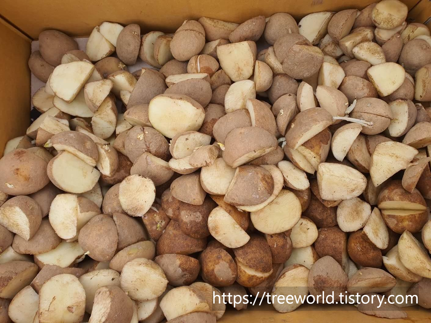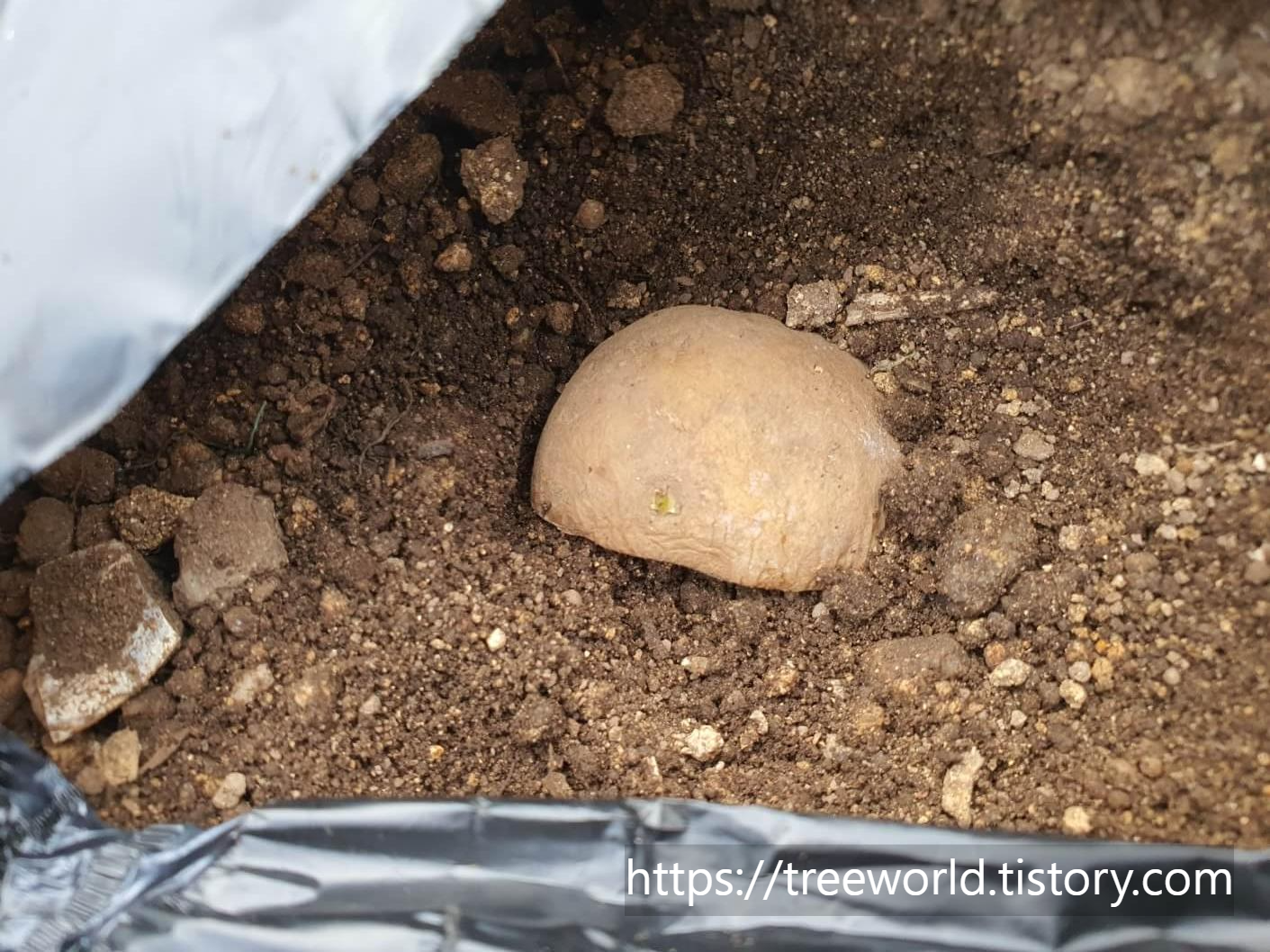 원하는 씨감자를 골랐다면 이제 씨감자 자르기를 하여야 합니다. 씨감자는 눈이 골고루 나와있어야 좋은 상태입니다. 두백 씨감자는 수미감자보다 다소 작은 느낌이었습니다. 그런데 가격은 거의 2배 정도 비쌉니다. 10kg 1박스에 2만 8천 원이었습니다. 수미감자는 20kg이 3만 원입니다. 씨감자를 자르 때는 눈이 한 개만 있게 자르는 것이 좋습니다. 그러나 씨눈이 많을 때는 어쩔 수 없이 여러 개가 있는 곳을 자를 수도 있지만 가급적 1~2개의 눈이 있게 자르는 것이 최상의 방법입니다. 자른 감자씨가 좀 작아도 상관없습니다.